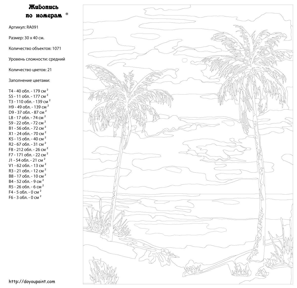 Количество красок от 18 до 24. Картина раскрашивается без смешивания красок. Высококачественные акриловые краски собственного производства сделают вашу картину яркой и уникальной. Все необходимые материалы есть в комплекте: натуральный хлопковый холст, натянутый на деревянный подрамник, баночки с акриловыми красками на водной основе, 2 кисти из качественного нейлона, схема раскрашивания, инструкция. Просто закрашивайте участки красками с соответствующим номером.