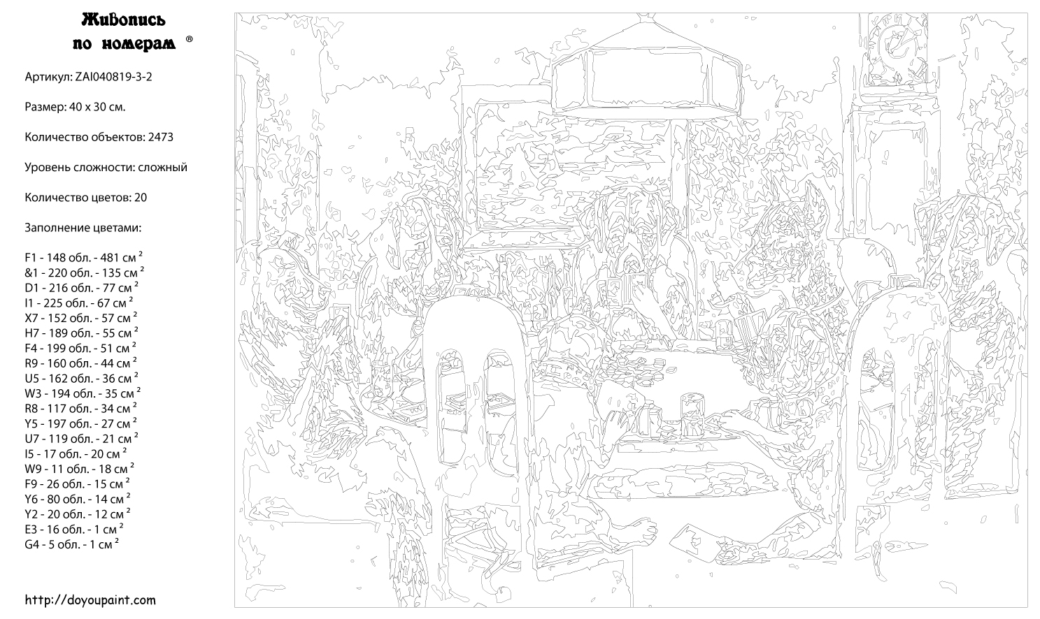 Количество красок от 18 до 24. Картина раскрашивается без смешивания красок. Высококачественные акриловые краски собственного производства сделают вашу картину яркой и уникальной. Все необходимые материалы есть в комплекте: натуральный хлопковый холст, натянутый на деревянный подрамник, баночки с акриловыми красками на водной основе, 2 кисти из качественного нейлона, схема раскрашивания, инструкция. Просто закрашивайте участки красками с соответствующим номером.