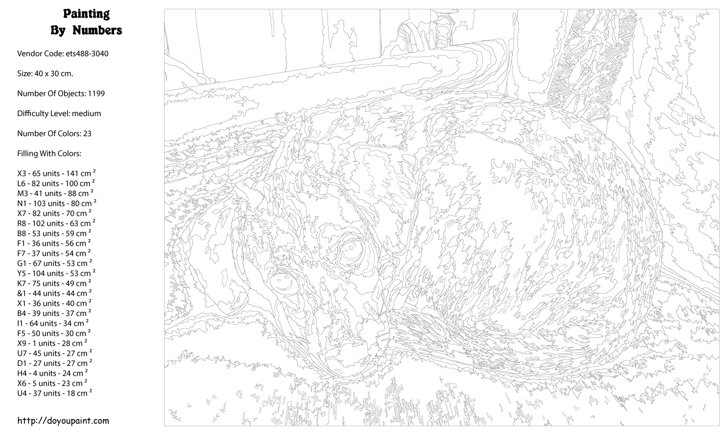 Количество красок от 18 до 24. Картина раскрашивается без смешивания красок. Высококачественные акриловые краски собственного производства сделают вашу картину яркой и уникальной. Все необходимые материалы есть в комплекте: натуральный хлопковый холст, натянутый на деревянный подрамник, баночки с акриловыми красками на водной основе, 2 кисти из качественного нейлона, схема раскрашивания, инструкция. Просто закрашивайте участки красками с соответствующим номером.