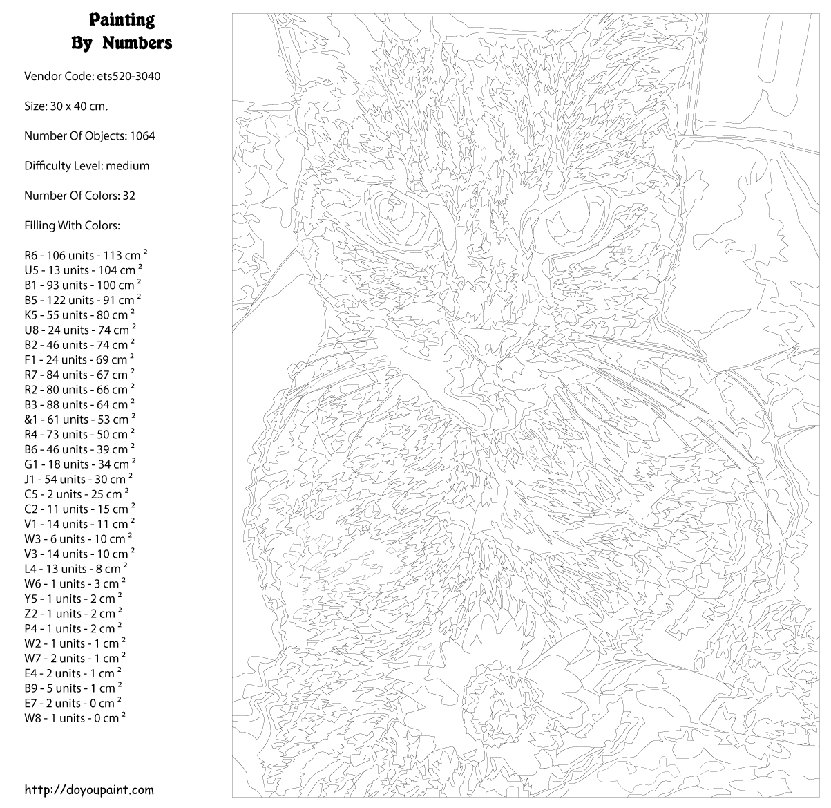 Количество красок от 18 до 24. Картина раскрашивается без смешивания красок. Высококачественные акриловые краски собственного производства сделают вашу картину яркой и уникальной. Все необходимые материалы есть в комплекте: натуральный хлопковый холст, натянутый на деревянный подрамник, баночки с акриловыми красками на водной основе, 2 кисти из качественного нейлона, схема раскрашивания, инструкция. Просто закрашивайте участки красками с соответствующим номером.