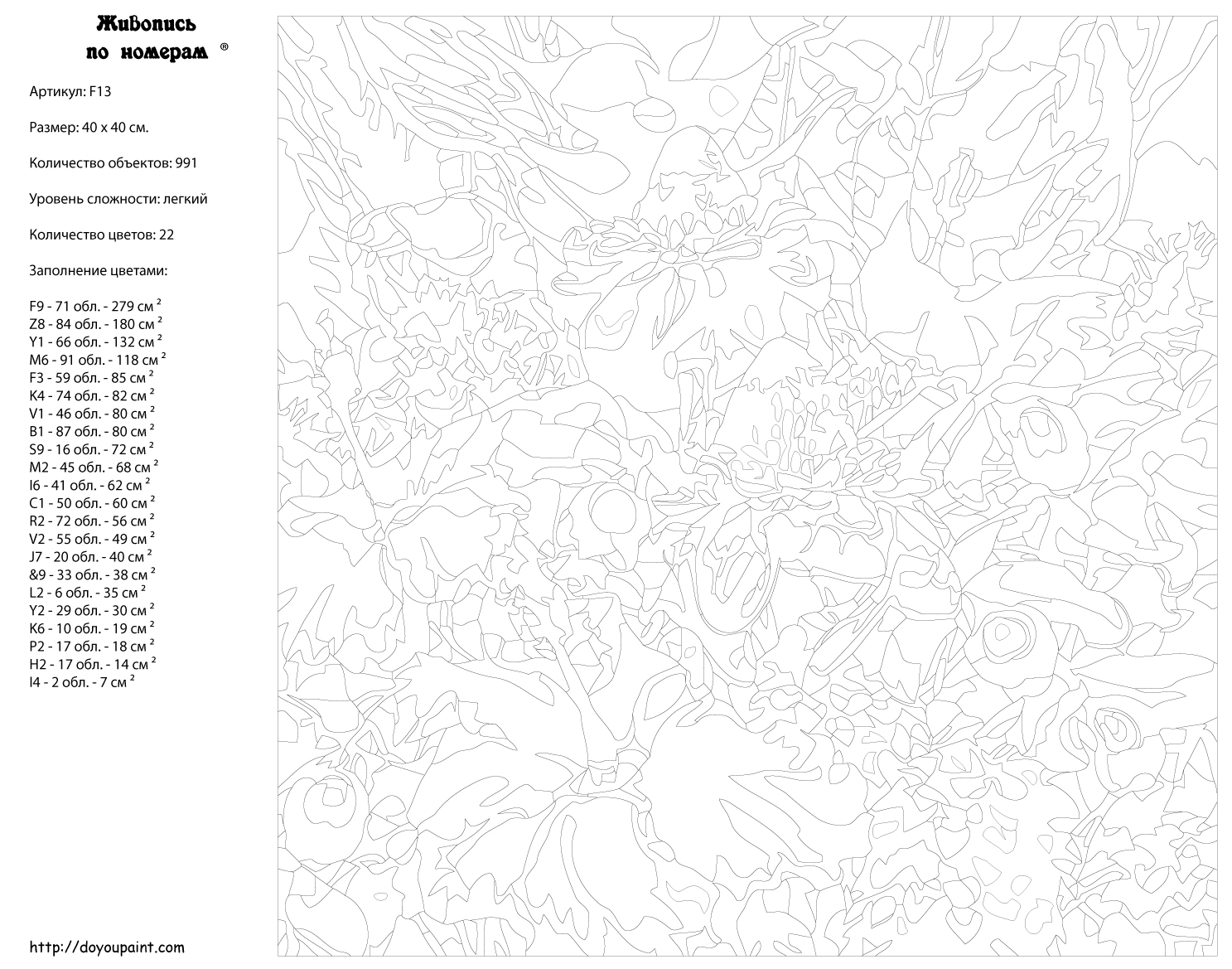 Картина по номерам, 40 x 40, F13