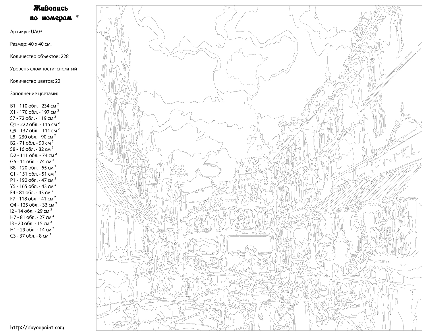 Количество красок от 18 до 24. Картина раскрашивается без смешивания красок. Высококачественные акриловые краски собственного производства сделают вашу картину яркой и уникальной. Все необходимые материалы есть в комплекте: натуральный хлопковый холст, натянутый на деревянный подрамник, баночки с акриловыми красками на водной основе, 2 кисти из качественного нейлона, схема раскрашивания, инструкция. Просто закрашивайте участки красками с соответствующим номером.