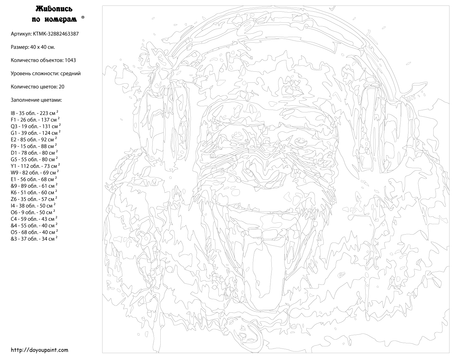 Количество красок от 18 до 24. Картина раскрашивается без смешивания красок. Высококачественные акриловые краски собственного производства сделают вашу картину яркой и уникальной. Все необходимые материалы есть в комплекте: натуральный хлопковый холст, натянутый на деревянный подрамник, баночки с акриловыми красками на водной основе, 2 кисти из качественного нейлона, схема раскрашивания, инструкция. Просто закрашивайте участки красками с соответствующим номером.
