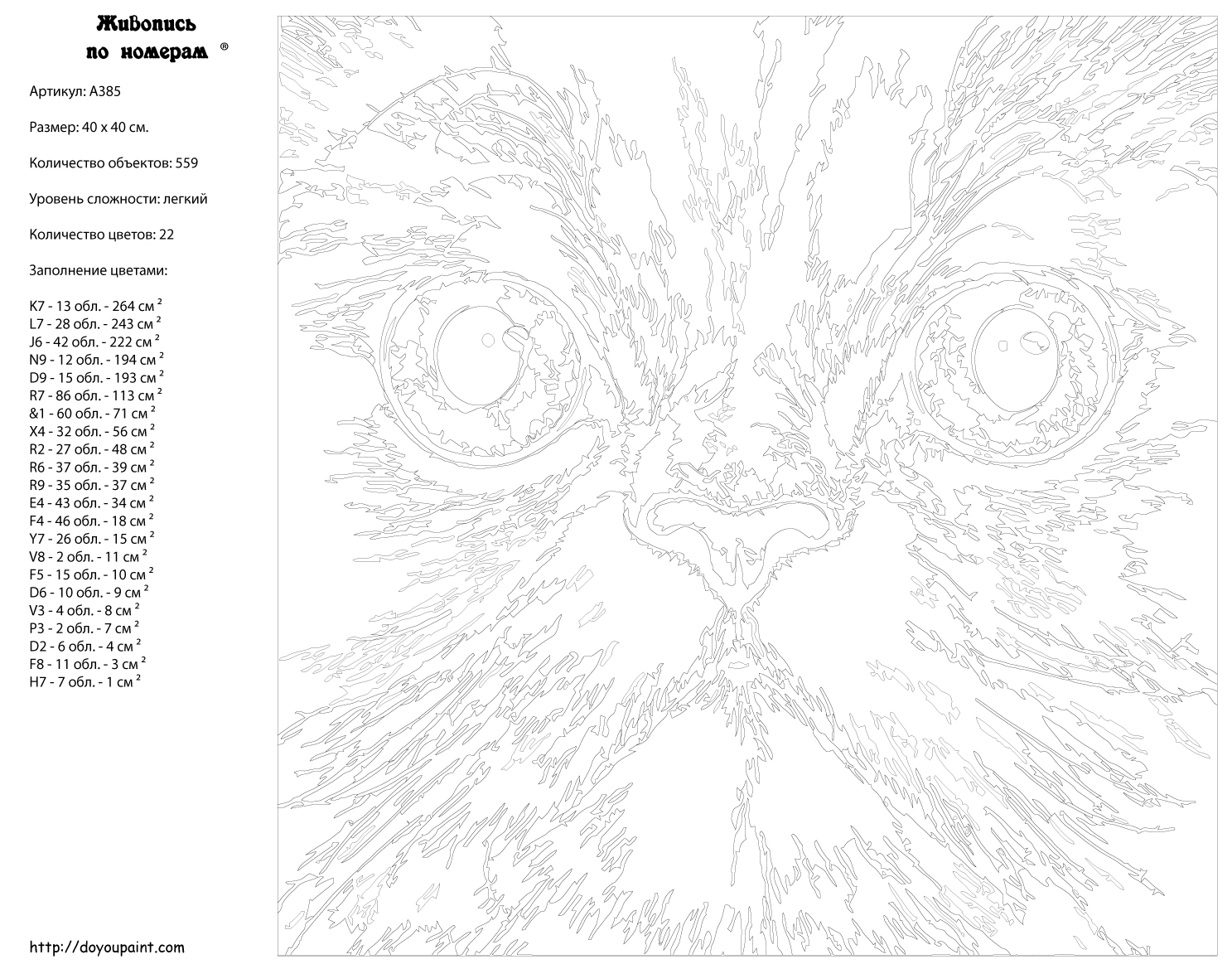 Количество красок от 18 до 24. Картина раскрашивается без смешивания красок. Высококачественные акриловые краски собственного производства сделают вашу картину яркой и уникальной. Все необходимые материалы есть в комплекте: натуральный хлопковый холст, натянутый на деревянный подрамник, баночки с акриловыми красками на водной основе, 2 кисти из качественного нейлона, схема раскрашивания, инструкция. Просто закрашивайте участки красками с соответствующим номером.
