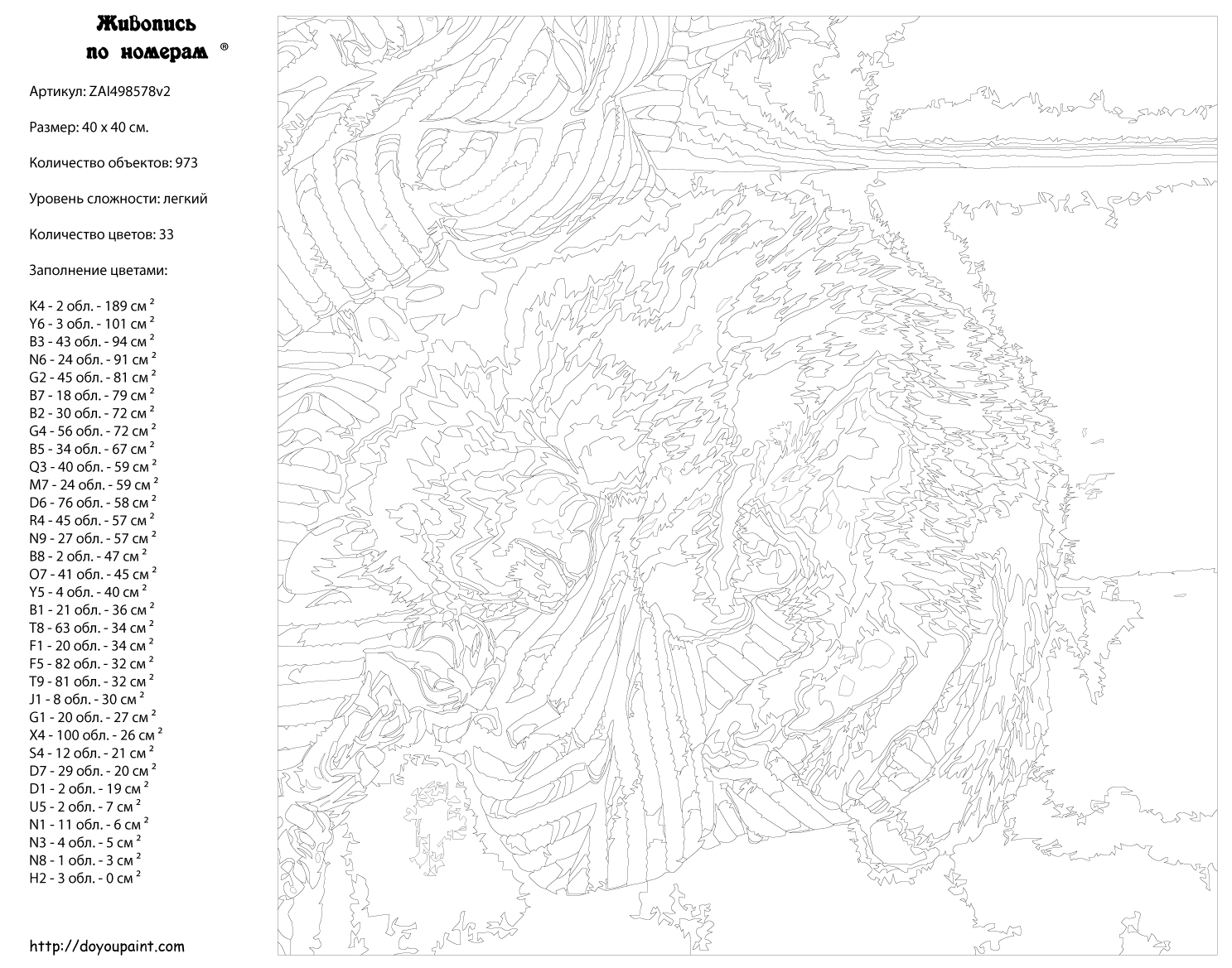 Количество красок от 18 до 24. Картина раскрашивается без смешивания красок. Высококачественные акриловые краски собственного производства сделают вашу картину яркой и уникальной. Все необходимые материалы есть в комплекте: натуральный хлопковый холст, натянутый на деревянный подрамник, баночки с акриловыми красками на водной основе, 2 кисти из качественного нейлона, схема раскрашивания, инструкция. Просто закрашивайте участки красками с соответствующим номером.