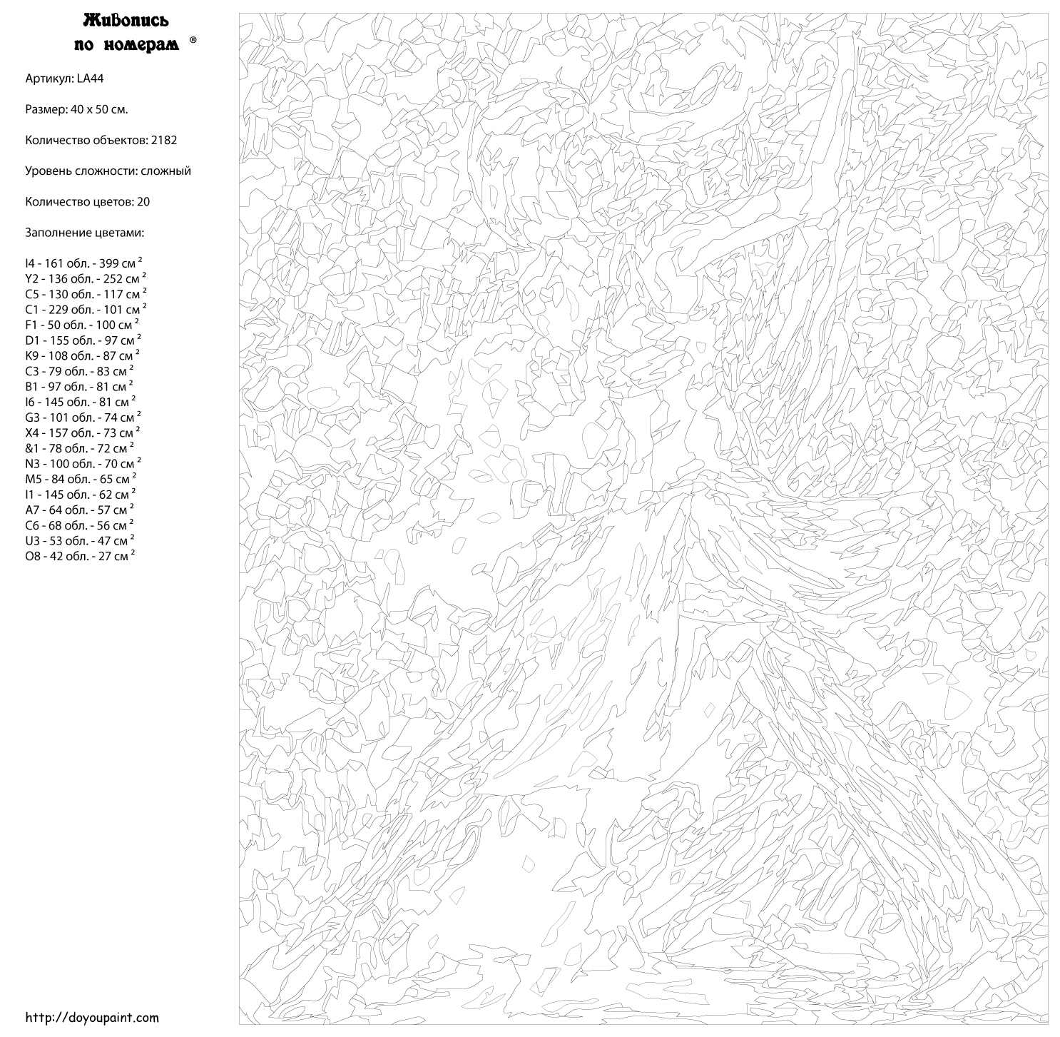 Количество красок от 18 до 24. Картина раскрашивается без смешивания красок. Высококачественные акриловые краски собственного производства сделают вашу картину яркой и уникальной. Все необходимые материалы есть в комплекте: натуральный хлопковый холст, натянутый на деревянный подрамник, баночки с акриловыми красками на водной основе, 2 кисти из качественного нейлона, схема раскрашивания, инструкция. Просто закрашивайте участки красками с соответствующим номером.