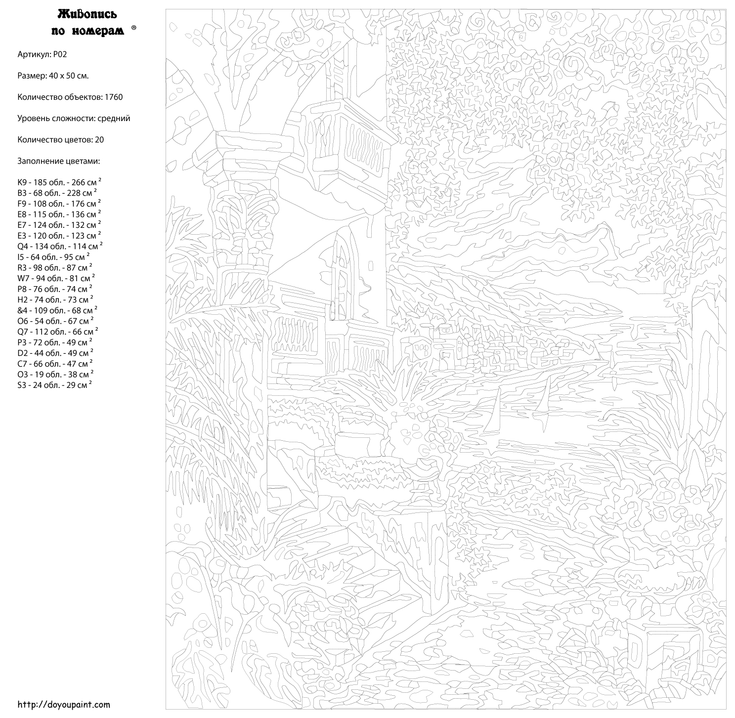 Количество красок от 18 до 24. Картина раскрашивается без смешивания красок. Высококачественные акриловые краски собственного производства сделают вашу картину яркой и уникальной. Все необходимые материалы есть в комплекте: натуральный хлопковый холст, натянутый на деревянный подрамник, баночки с акриловыми красками на водной основе, 2 кисти из качественного нейлона, схема раскрашивания, инструкция. Просто закрашивайте участки красками с соответствующим номером.