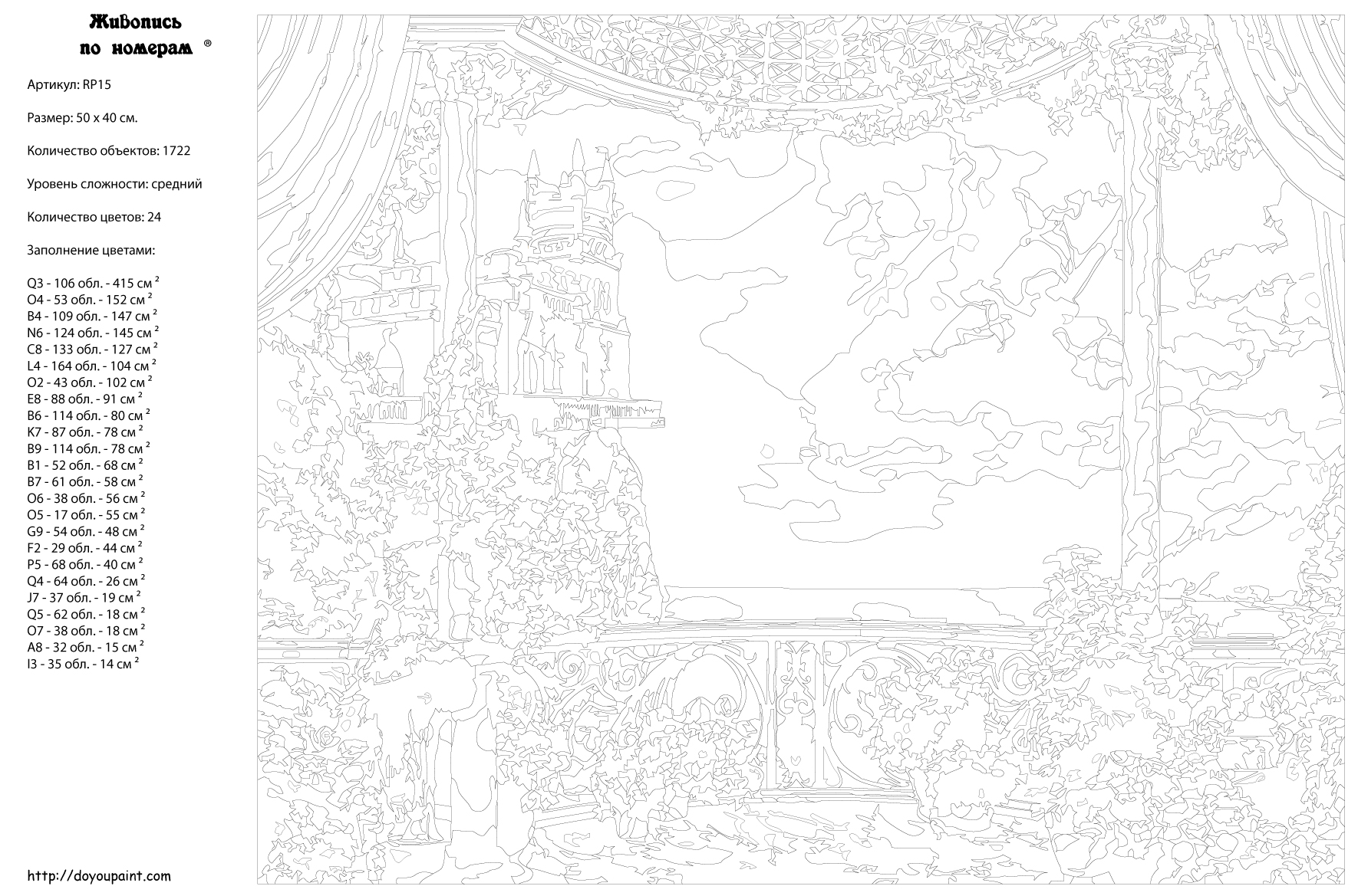 Количество красок от 18 до 24. Картина раскрашивается без смешивания красок. Высококачественные акриловые краски собственного производства сделают вашу картину яркой и уникальной. Все необходимые материалы есть в комплекте: натуральный хлопковый холст, натянутый на деревянный подрамник, баночки с акриловыми красками на водной основе, 2 кисти из качественного нейлона, схема раскрашивания, инструкция. Просто закрашивайте участки красками с соответствующим номером.