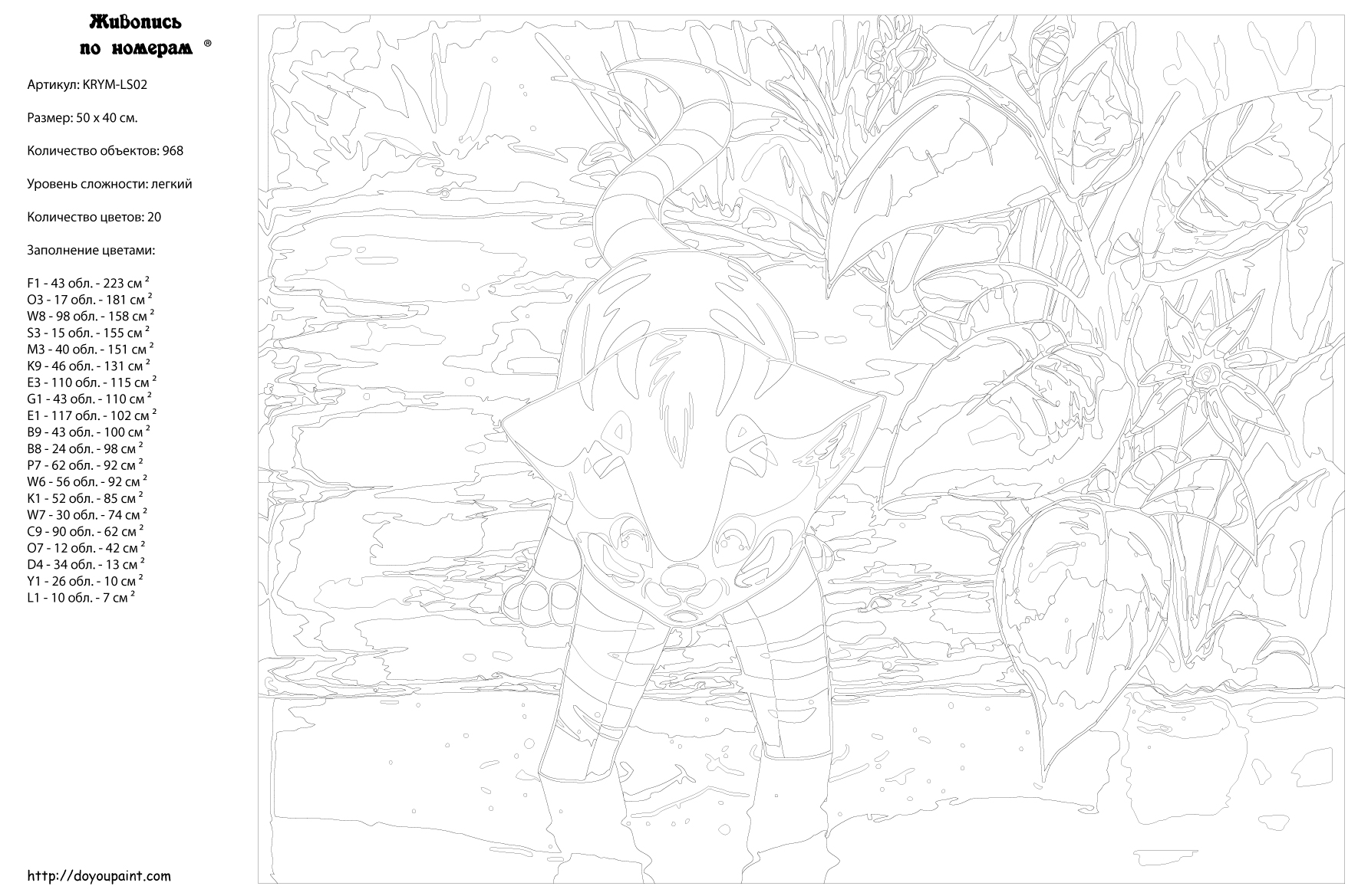 Количество красок от 18 до 24. Картина раскрашивается без смешивания красок. Высококачественные акриловые краски собственного производства сделают вашу картину яркой и уникальной. Все необходимые материалы есть в комплекте: натуральный хлопковый холст, натянутый на деревянный подрамник, баночки с акриловыми красками на водной основе, 2 кисти из качественного нейлона, схема раскрашивания, инструкция. Просто закрашивайте участки красками с соответствующим номером.