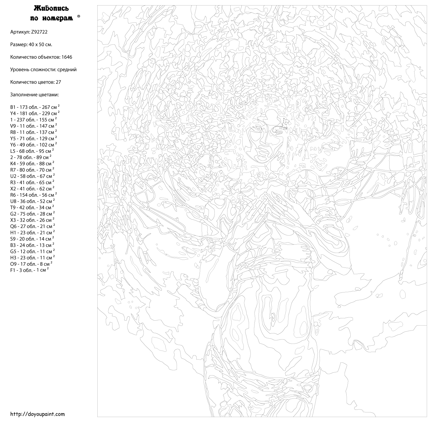 Количество красок от 18 до 24. Картина раскрашивается без смешивания красок. Высококачественные акриловые краски собственного производства сделают вашу картину яркой и уникальной. Все необходимые материалы есть в комплекте: натуральный хлопковый холст, натянутый на деревянный подрамник, баночки с акриловыми красками на водной основе, 2 кисти из качественного нейлона, схема раскрашивания, инструкция. Просто закрашивайте участки красками с соответствующим номером.