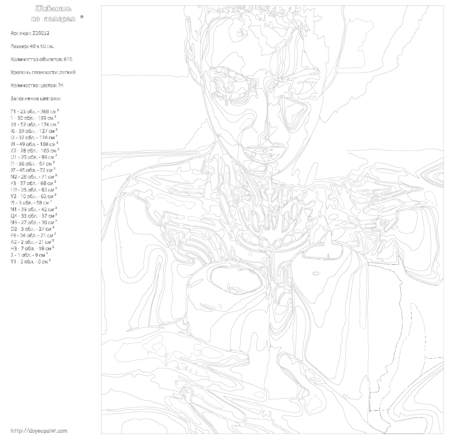 Количество красок от 18 до 24. Картина раскрашивается без смешивания красок. Высококачественные акриловые краски собственного производства сделают вашу картину яркой и уникальной. Все необходимые материалы есть в комплекте: натуральный хлопковый холст, натянутый на деревянный подрамник, баночки с акриловыми красками на водной основе, 2 кисти из качественного нейлона, схема раскрашивания, инструкция. Просто закрашивайте участки красками с соответствующим номером.