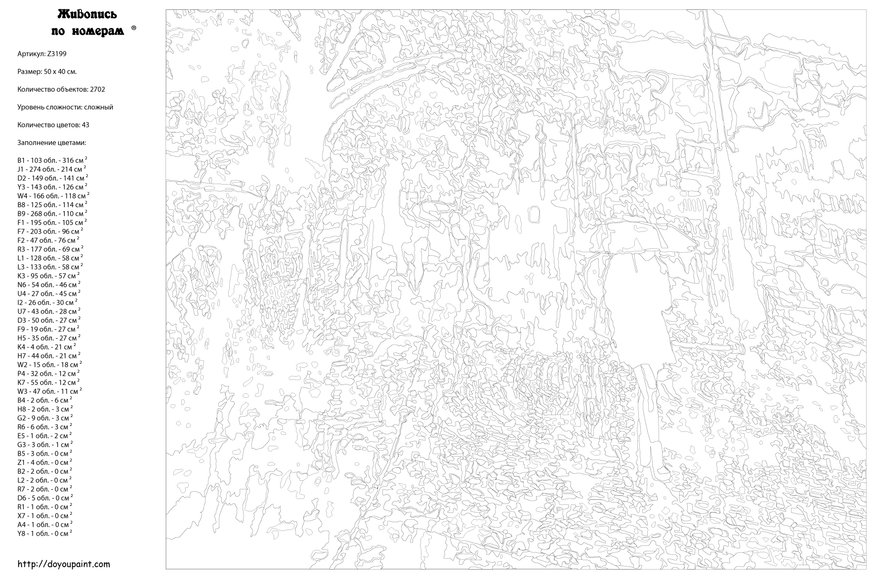 Количество красок от 18 до 24. Картина раскрашивается без смешивания красок. Высококачественные акриловые краски собственного производства сделают вашу картину яркой и уникальной. Все необходимые материалы есть в комплекте: натуральный хлопковый холст, натянутый на деревянный подрамник, баночки с акриловыми красками на водной основе, 2 кисти из качественного нейлона, схема раскрашивания, инструкция. Просто закрашивайте участки красками с соответствующим номером.