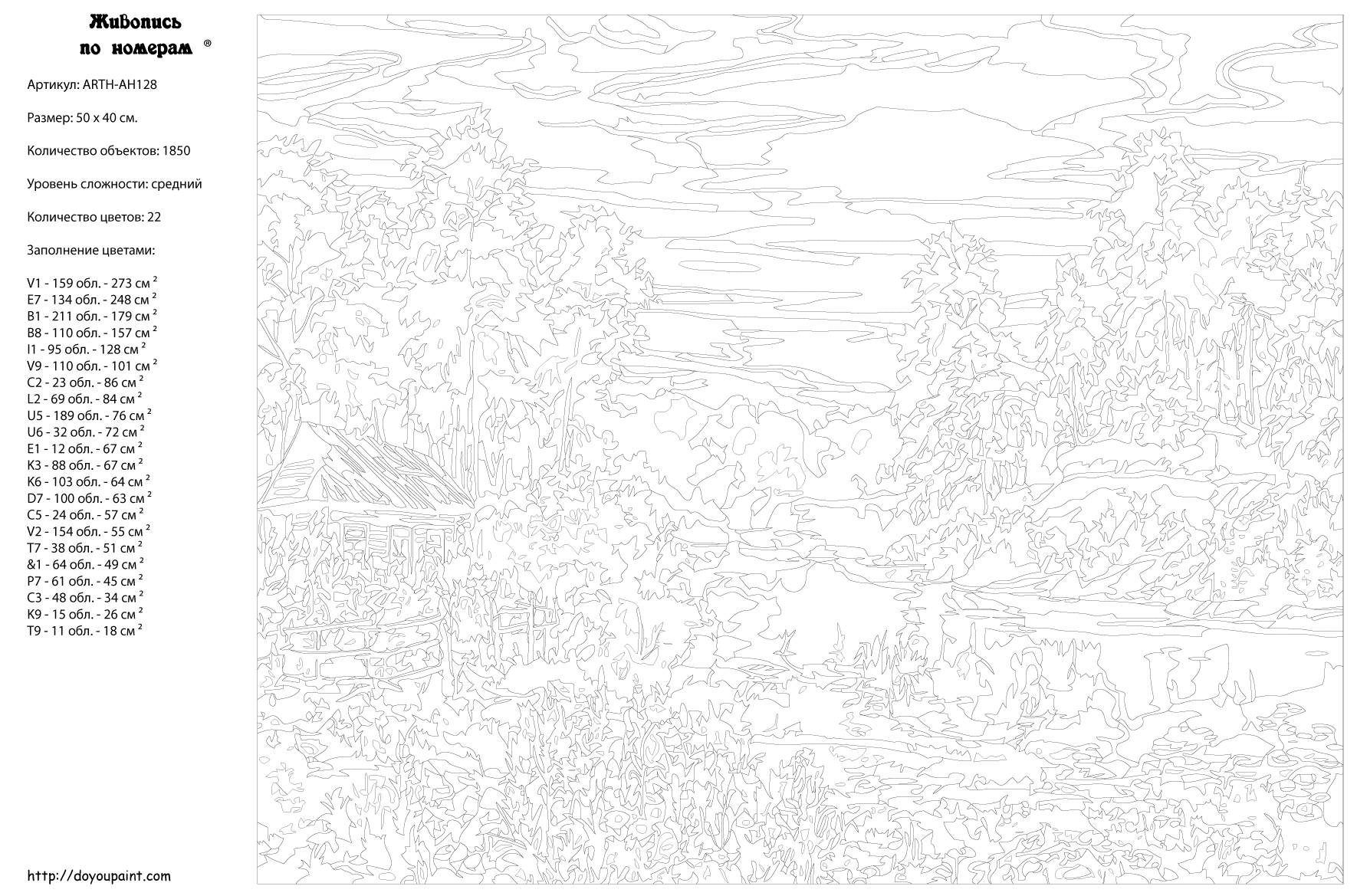 Количество красок от 18 до 24. Картина раскрашивается без смешивания красок. Высококачественные акриловые краски собственного производства сделают вашу картину яркой и уникальной. Все необходимые материалы есть в комплекте: натуральный хлопковый холст, натянутый на деревянный подрамник, баночки с акриловыми красками на водной основе, 2 кисти из качественного нейлона, схема раскрашивания, инструкция. Просто закрашивайте участки красками с соответствующим номером.