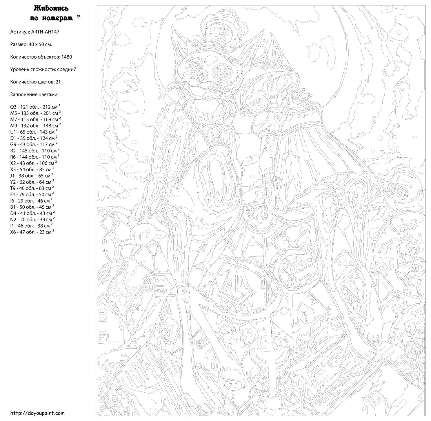 Количество красок от 18 до 24. Картина раскрашивается без смешивания красок. Высококачественные акриловые краски собственного производства сделают вашу картину яркой и уникальной. Все необходимые материалы есть в комплекте: натуральный хлопковый холст, натянутый на деревянный подрамник, баночки с акриловыми красками на водной основе, 2 кисти из качественного нейлона, схема раскрашивания, инструкция. Просто закрашивайте участки красками с соответствующим номером.