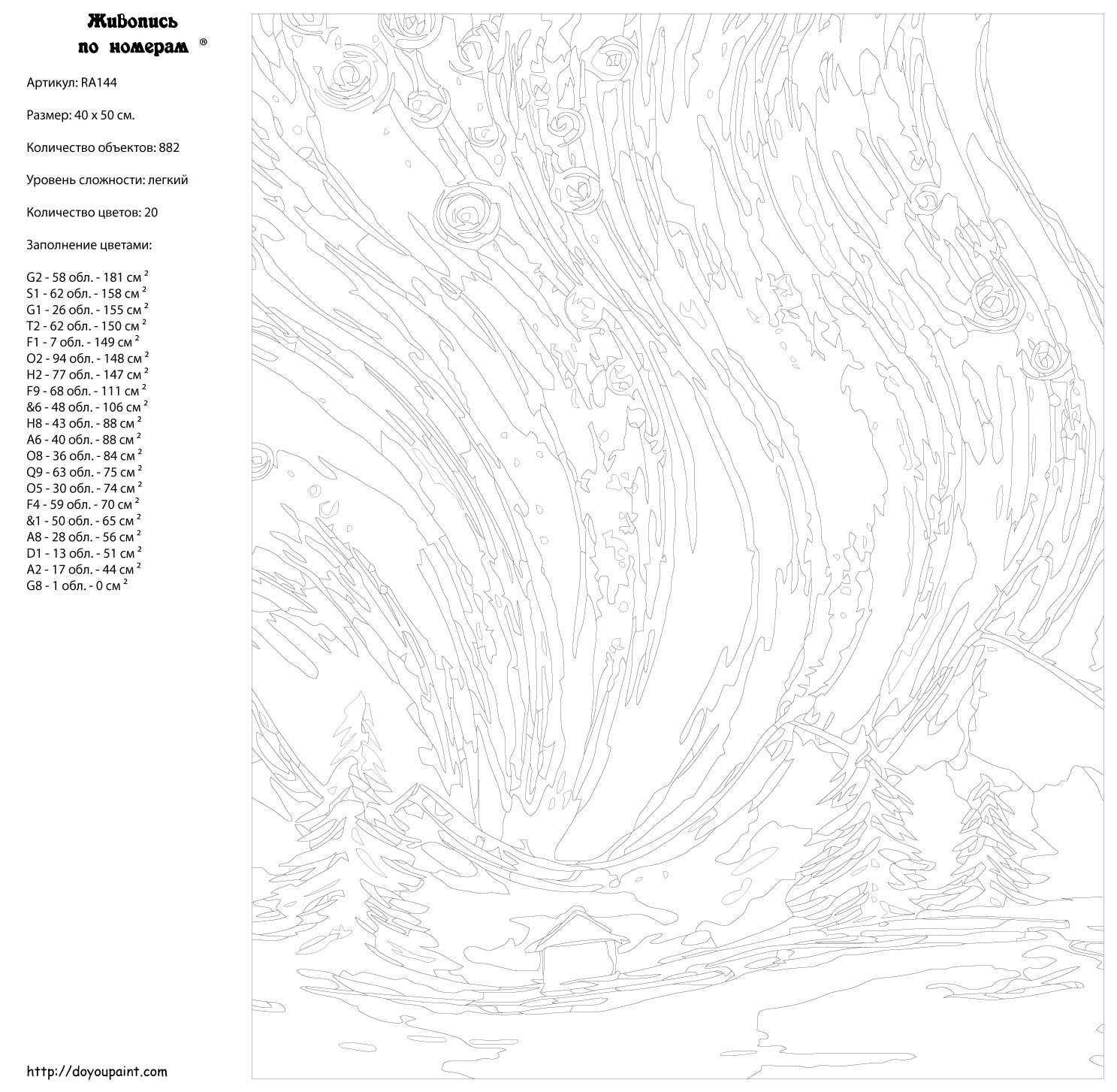 Количество красок от 18 до 24. Картина раскрашивается без смешивания красок. Высококачественные акриловые краски собственного производства сделают вашу картину яркой и уникальной. Все необходимые материалы есть в комплекте: натуральный хлопковый холст, натянутый на деревянный подрамник, баночки с акриловыми красками на водной основе, 2 кисти из качественного нейлона, схема раскрашивания, инструкция. Просто закрашивайте участки красками с соответствующим номером.
