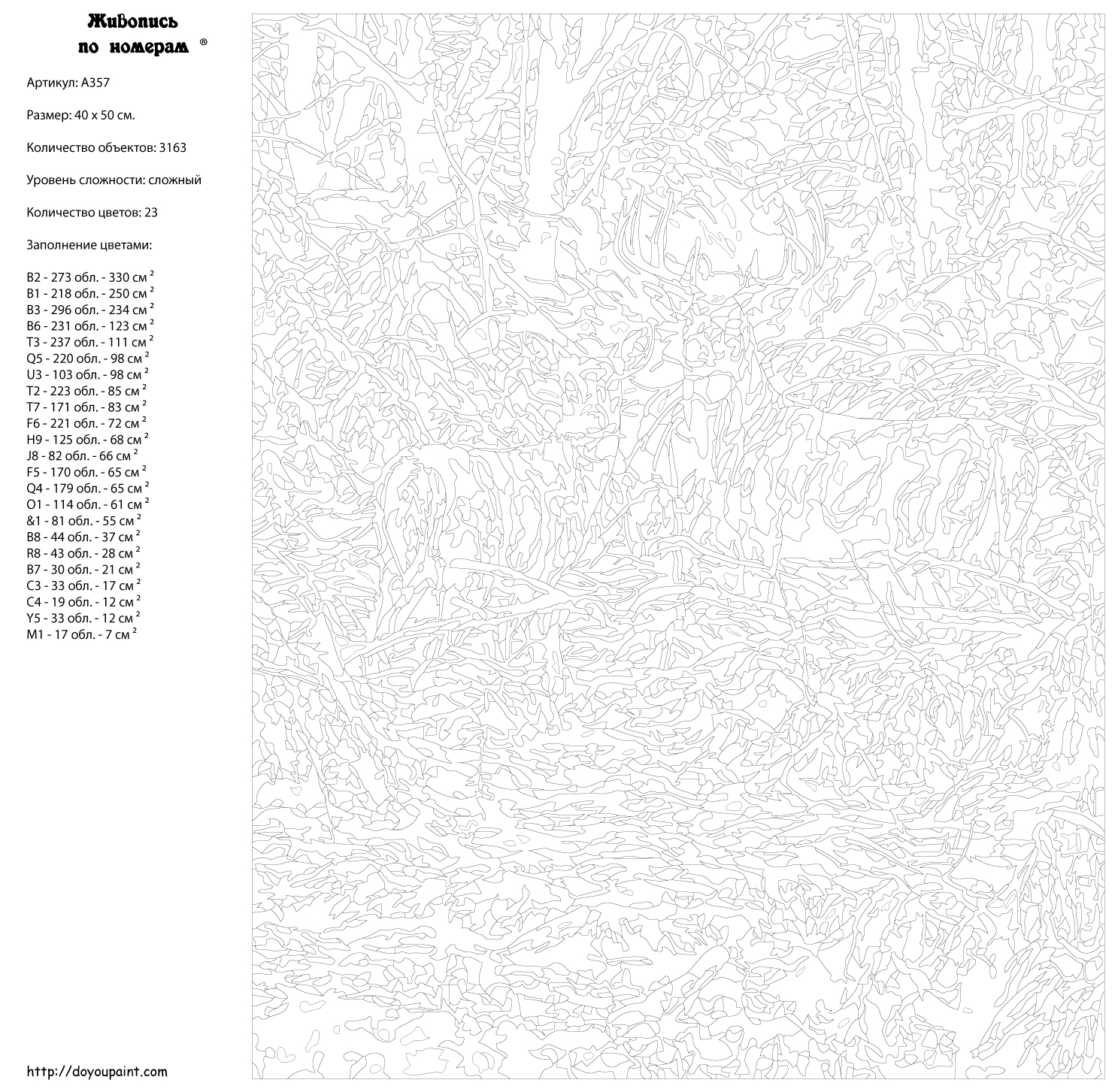 Количество красок от 18 до 24. Картина раскрашивается без смешивания красок. Высококачественные акриловые краски собственного производства сделают вашу картину яркой и уникальной. Все необходимые материалы есть в комплекте: натуральный хлопковый холст, натянутый на деревянный подрамник, баночки с акриловыми красками на водной основе, 2 кисти из качественного нейлона, схема раскрашивания, инструкция. Просто закрашивайте участки красками с соответствующим номером.