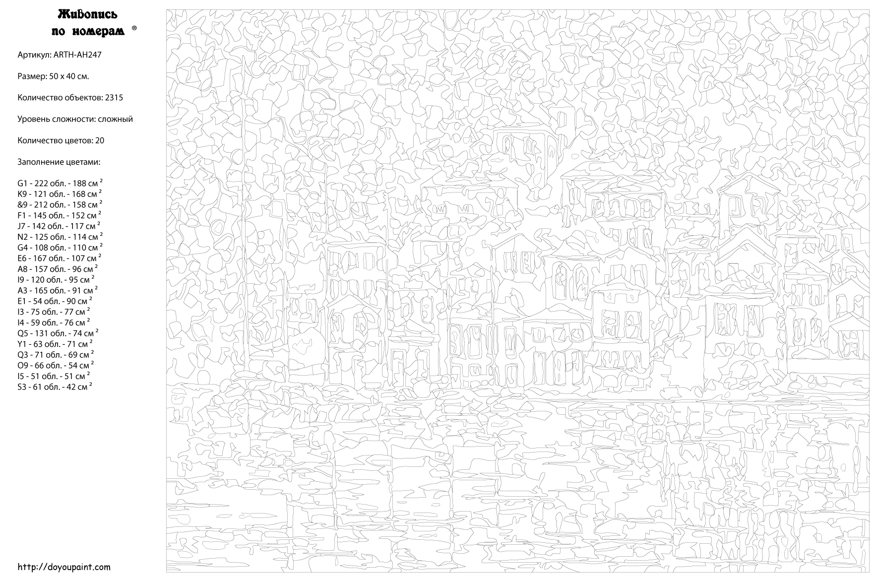 Количество красок от 18 до 24. Картина раскрашивается без смешивания красок. Высококачественные акриловые краски собственного производства сделают вашу картину яркой и уникальной. Все необходимые материалы есть в комплекте: натуральный хлопковый холст, натянутый на деревянный подрамник, баночки с акриловыми красками на водной основе, 2 кисти из качественного нейлона, схема раскрашивания, инструкция. Просто закрашивайте участки красками с соответствующим номером.