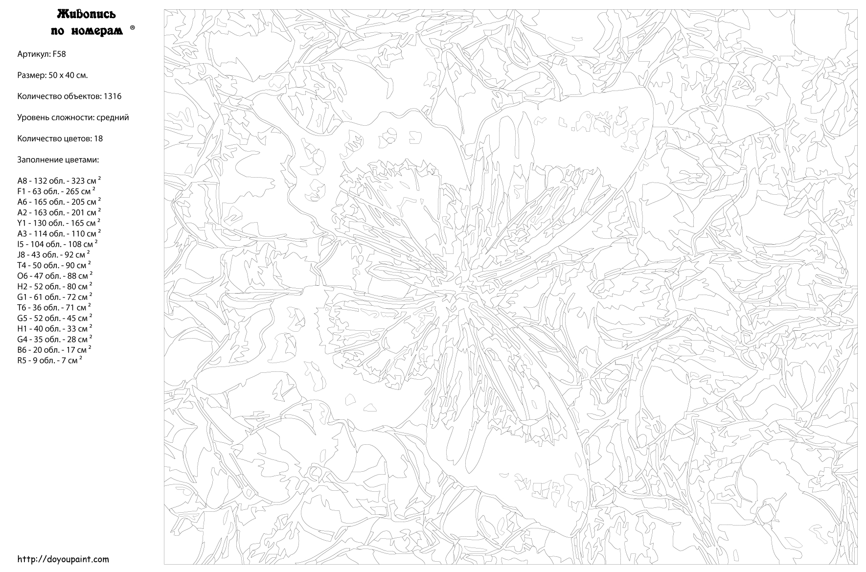 Количество красок от 18 до 24. Картина раскрашивается без смешивания красок. Высококачественные акриловые краски собственного производства сделают вашу картину яркой и уникальной. Все необходимые материалы есть в комплекте: натуральный хлопковый холст, натянутый на деревянный подрамник, баночки с акриловыми красками на водной основе, 2 кисти из качественного нейлона, схема раскрашивания, инструкция. Просто закрашивайте участки красками с соответствующим номером.