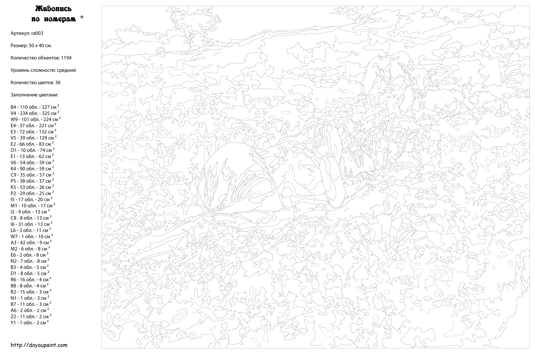 Количество красок от 18 до 24. Картина раскрашивается без смешивания красок. Высококачественные акриловые краски собственного производства сделают вашу картину яркой и уникальной. Все необходимые материалы есть в комплекте: натуральный хлопковый холст, натянутый на деревянный подрамник, баночки с акриловыми красками на водной основе, 2 кисти из качественного нейлона, схема раскрашивания, инструкция. Просто закрашивайте участки красками с соответствующим номером.