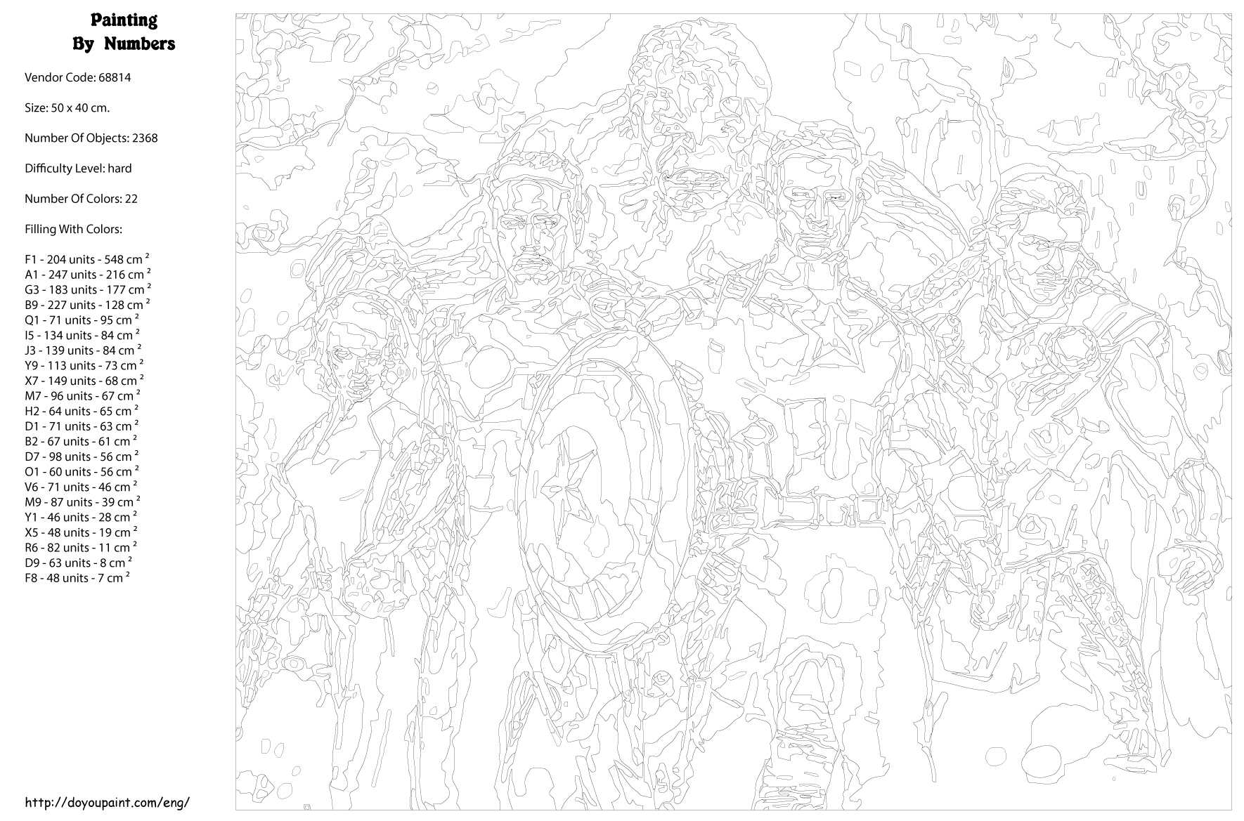 Количество красок от 18 до 24. Картина раскрашивается без смешивания красок. Высококачественные акриловые краски собственного производства сделают вашу картину яркой и уникальной. Все необходимые материалы есть в комплекте: натуральный хлопковый холст, натянутый на деревянный подрамник, баночки с акриловыми красками на водной основе, 2 кисти из качественного нейлона, схема раскрашивания, инструкция. Просто закрашивайте участки красками с соответствующим номером.