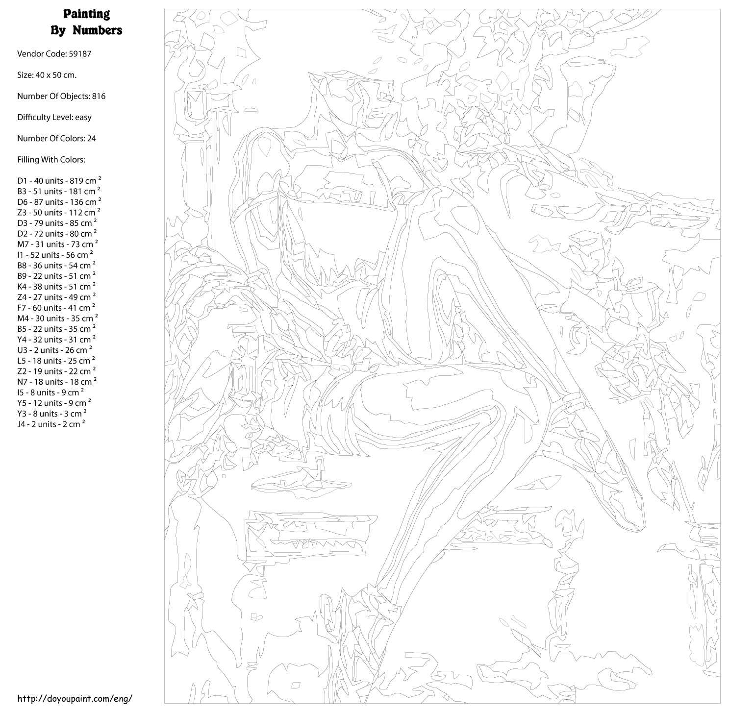 Количество красок от 18 до 24. Картина раскрашивается без смешивания красок. Высококачественные акриловые краски собственного производства сделают вашу картину яркой и уникальной. Все необходимые материалы есть в комплекте: натуральный хлопковый холст, натянутый на деревянный подрамник, баночки с акриловыми красками на водной основе, 2 кисти из качественного нейлона, схема раскрашивания, инструкция. Просто закрашивайте участки красками с соответствующим номером.