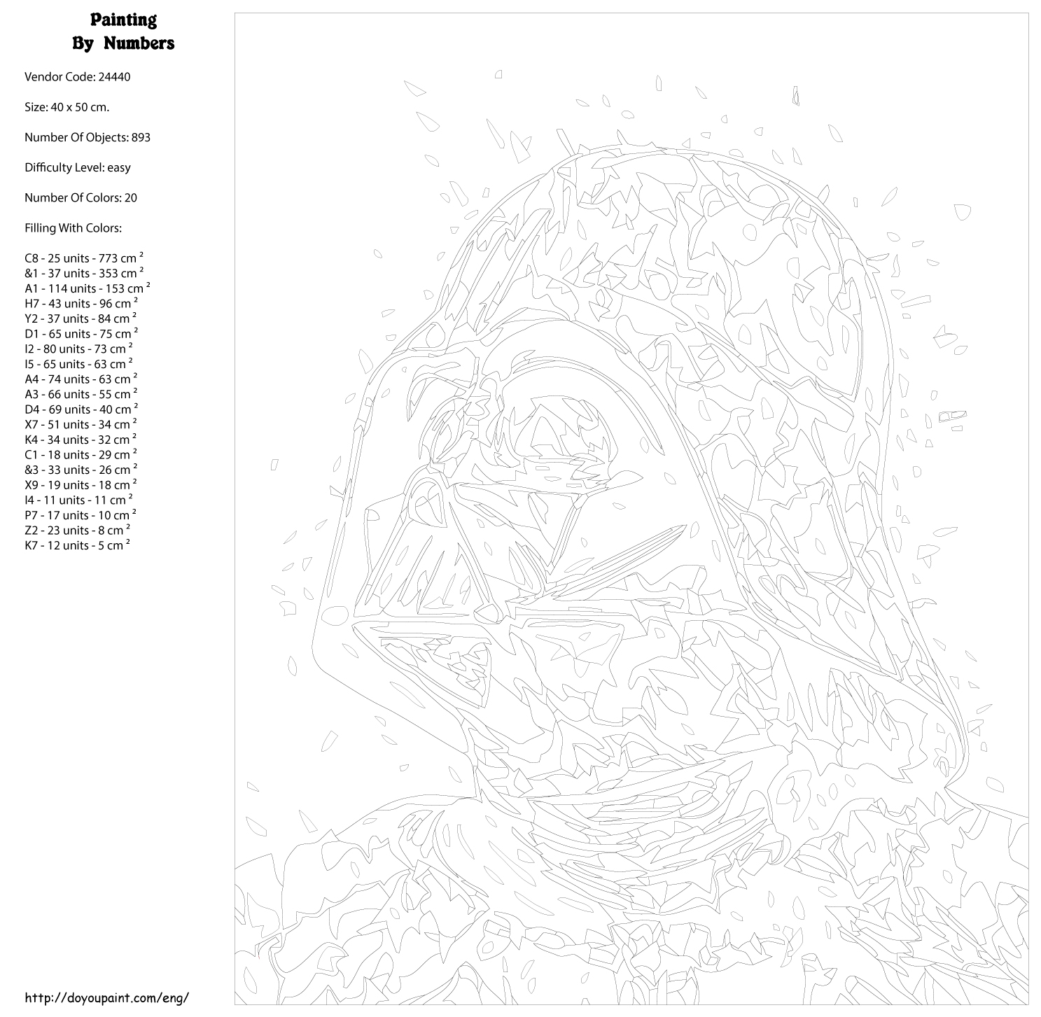 Количество красок от 18 до 24. Картина раскрашивается без смешивания красок. Высококачественные акриловые краски собственного производства сделают вашу картину яркой и уникальной. Все необходимые материалы есть в комплекте: натуральный хлопковый холст, натянутый на деревянный подрамник, баночки с акриловыми красками на водной основе, 2 кисти из качественного нейлона, схема раскрашивания, инструкция. Просто закрашивайте участки красками с соответствующим номером.