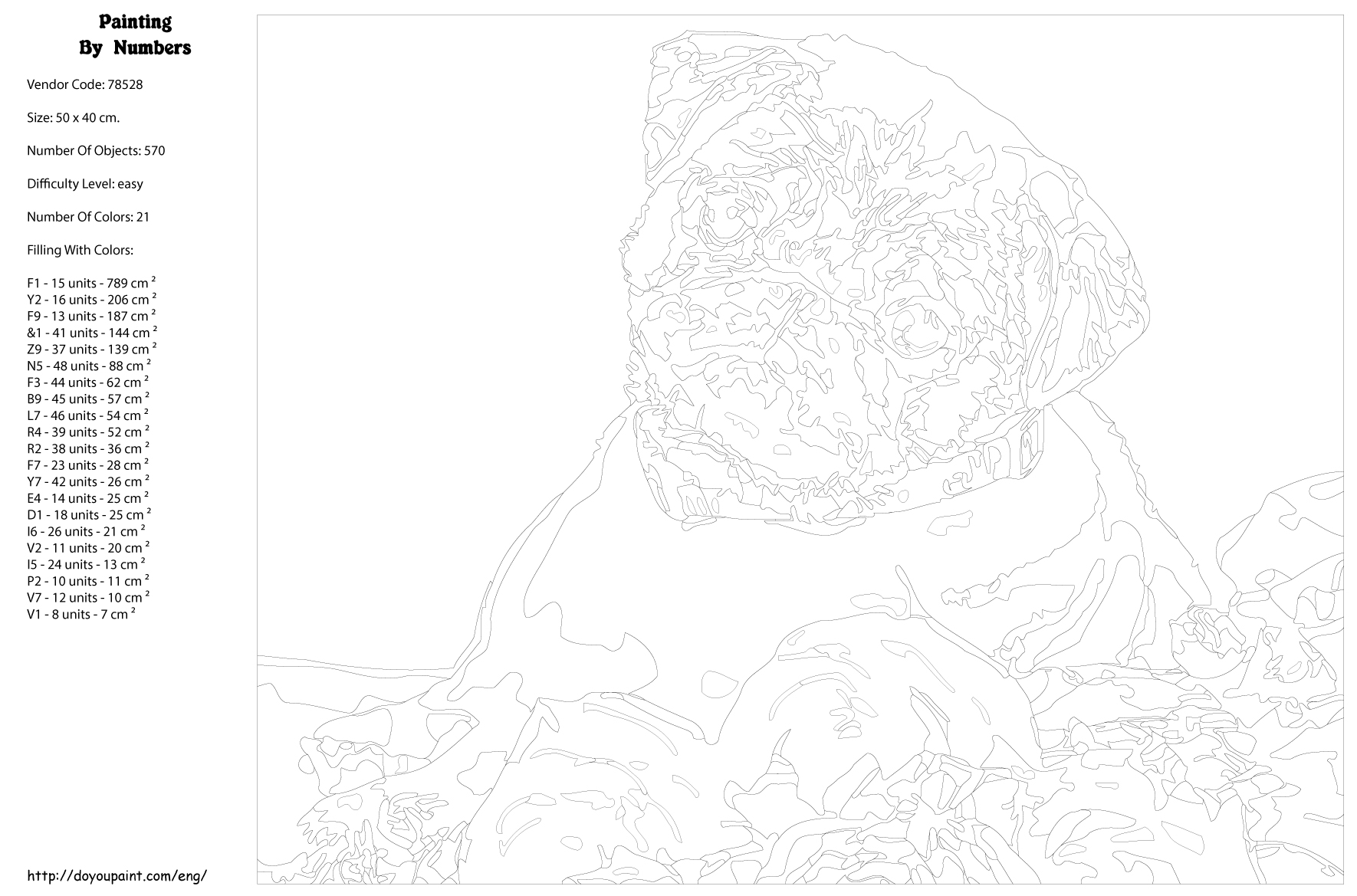Количество красок от 18 до 24. Картина раскрашивается без смешивания красок. Высококачественные акриловые краски собственного производства сделают вашу картину яркой и уникальной. Все необходимые материалы есть в комплекте: натуральный хлопковый холст, натянутый на деревянный подрамник, баночки с акриловыми красками на водной основе, 2 кисти из качественного нейлона, схема раскрашивания, инструкция. Просто закрашивайте участки красками с соответствующим номером.