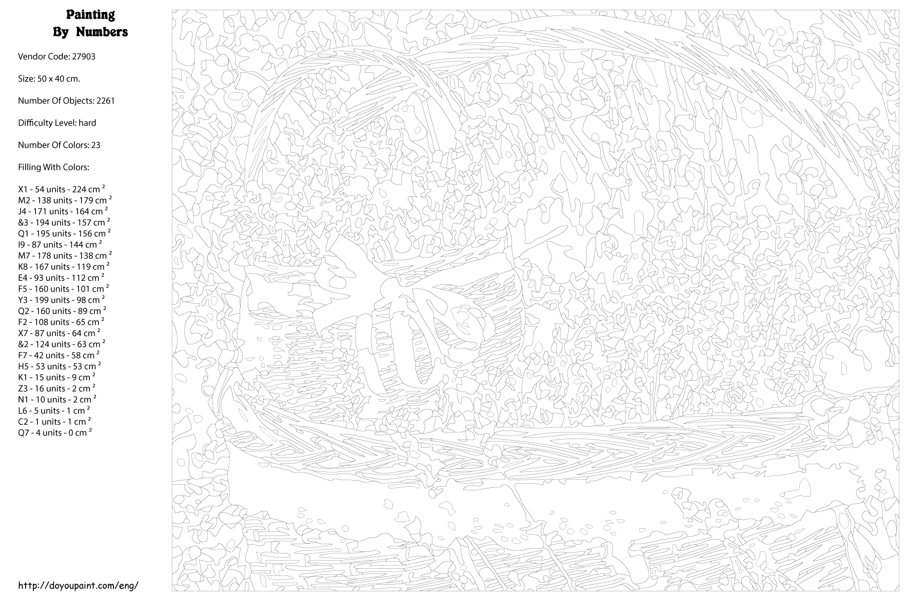Количество красок от 18 до 24. Картина раскрашивается без смешивания красок. Высококачественные акриловые краски собственного производства сделают вашу картину яркой и уникальной. Все необходимые материалы есть в комплекте: натуральный хлопковый холст, натянутый на деревянный подрамник, баночки с акриловыми красками на водной основе, 2 кисти из качественного нейлона, схема раскрашивания, инструкция. Просто закрашивайте участки красками с соответствующим номером.