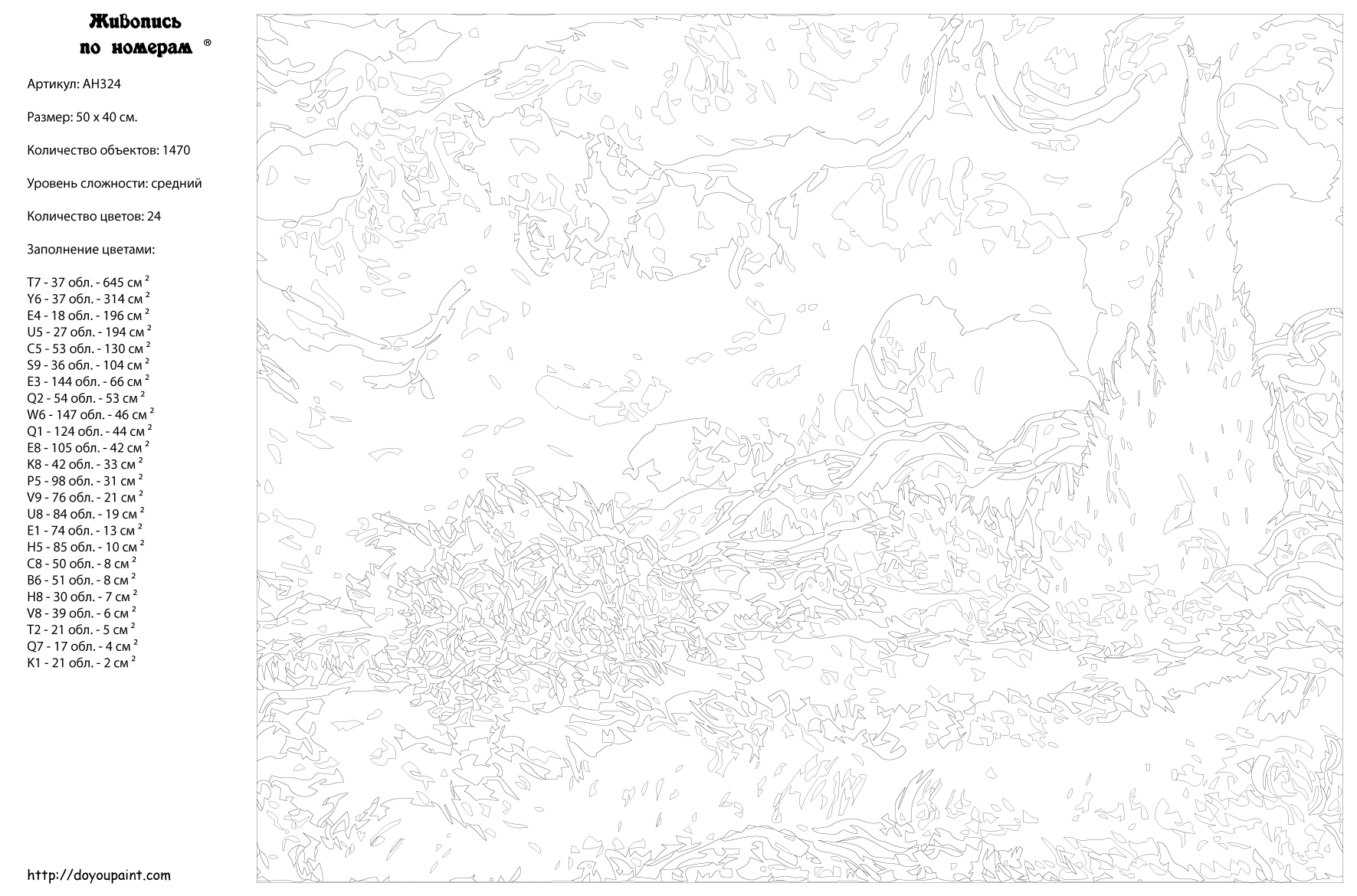 Количество красок от 18 до 24. Картина раскрашивается без смешивания красок. Высококачественные акриловые краски собственного производства сделают вашу картину яркой и уникальной. Все необходимые материалы есть в комплекте: натуральный хлопковый холст, натянутый на деревянный подрамник, баночки с акриловыми красками на водной основе, 2 кисти из качественного нейлона, схема раскрашивания, инструкция. Просто закрашивайте участки красками с соответствующим номером.