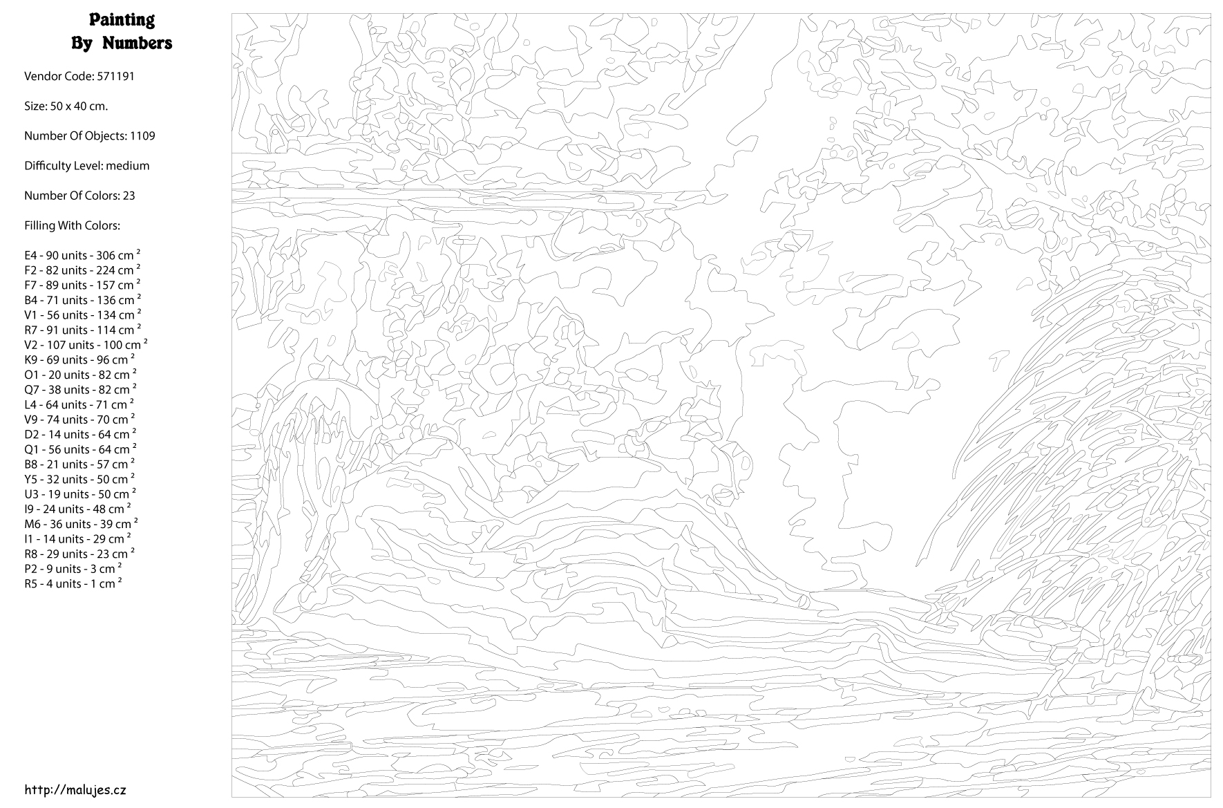 Количество красок от 18 до 24. Картина раскрашивается без смешивания красок. Высококачественные акриловые краски собственного производства сделают вашу картину яркой и уникальной. Все необходимые материалы есть в комплекте: натуральный хлопковый холст, натянутый на деревянный подрамник, баночки с акриловыми красками на водной основе, 2 кисти из качественного нейлона, схема раскрашивания, инструкция. Просто закрашивайте участки красками с соответствующим номером.