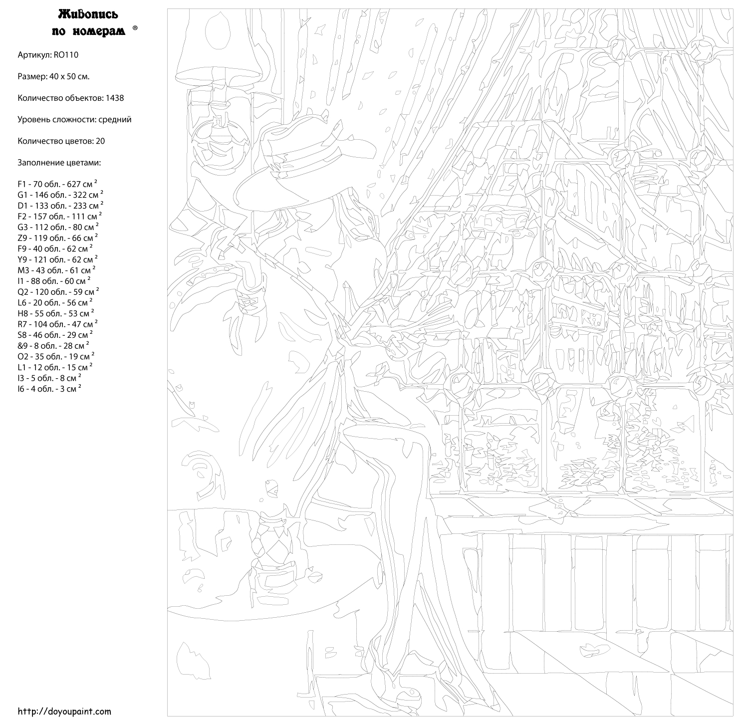 Количество красок от 18 до 24. Картина раскрашивается без смешивания красок. Высококачественные акриловые краски собственного производства сделают вашу картину яркой и уникальной. Все необходимые материалы есть в комплекте: натуральный хлопковый холст, натянутый на деревянный подрамник, баночки с акриловыми красками на водной основе, 2 кисти из качественного нейлона, схема раскрашивания, инструкция. Просто закрашивайте участки красками с соответствующим номером.