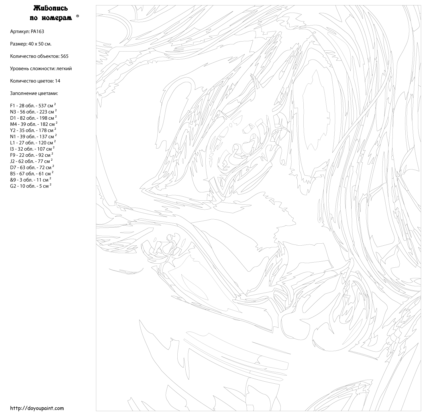 Количество красок от 18 до 24. Картина раскрашивается без смешивания красок. Высококачественные акриловые краски собственного производства сделают вашу картину яркой и уникальной. Все необходимые материалы есть в комплекте: натуральный хлопковый холст, натянутый на деревянный подрамник, баночки с акриловыми красками на водной основе, 2 кисти из качественного нейлона, схема раскрашивания, инструкция. Просто закрашивайте участки красками с соответствующим номером.