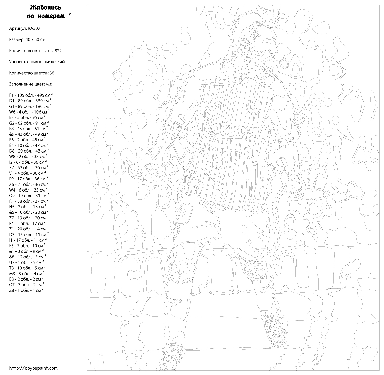 Количество красок от 18 до 24. Картина раскрашивается без смешивания красок. Высококачественные акриловые краски собственного производства сделают вашу картину яркой и уникальной. Все необходимые материалы есть в комплекте: натуральный хлопковый холст, натянутый на деревянный подрамник, баночки с акриловыми красками на водной основе, 2 кисти из качественного нейлона, схема раскрашивания, инструкция. Просто закрашивайте участки красками с соответствующим номером.