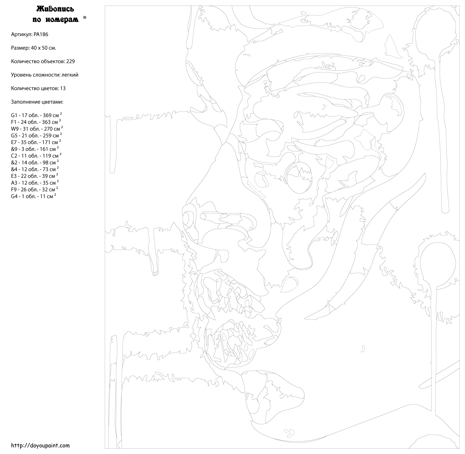 Количество красок от 18 до 24. Картина раскрашивается без смешивания красок. Высококачественные акриловые краски собственного производства сделают вашу картину яркой и уникальной. Все необходимые материалы есть в комплекте: натуральный хлопковый холст, натянутый на деревянный подрамник, баночки с акриловыми красками на водной основе, 2 кисти из качественного нейлона, схема раскрашивания, инструкция. Просто закрашивайте участки красками с соответствующим номером.
