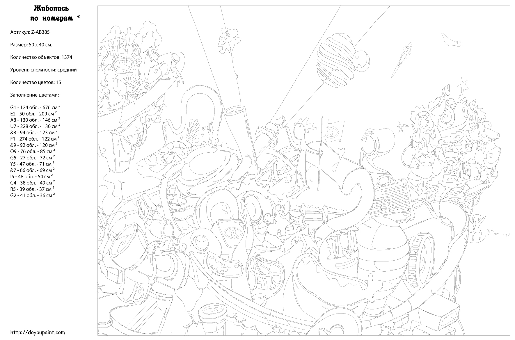Количество красок от 18 до 24. Картина раскрашивается без смешивания красок. Высококачественные акриловые краски собственного производства сделают вашу картину яркой и уникальной. Все необходимые материалы есть в комплекте: натуральный хлопковый холст, натянутый на деревянный подрамник, баночки с акриловыми красками на водной основе, 2 кисти из качественного нейлона, схема раскрашивания, инструкция. Просто закрашивайте участки красками с соответствующим номером.