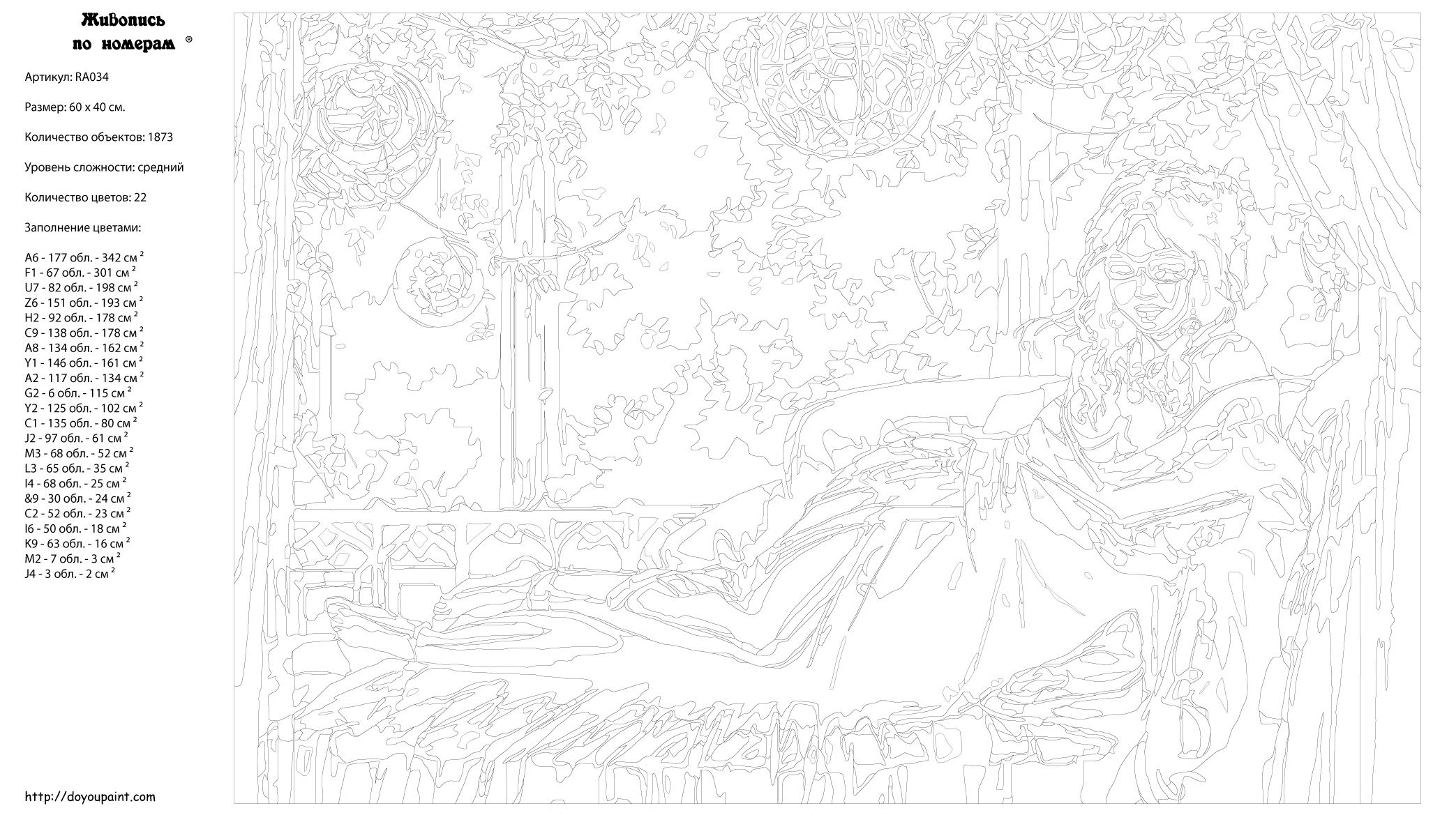 Количество красок от 18 до 24. Картина раскрашивается без смешивания красок. Высококачественные акриловые краски собственного производства сделают вашу картину яркой и уникальной. Все необходимые материалы есть в комплекте: натуральный хлопковый холст, натянутый на деревянный подрамник, баночки с акриловыми красками на водной основе, 2 кисти из качественного нейлона, схема раскрашивания, инструкция. Просто закрашивайте участки красками с соответствующим номером.