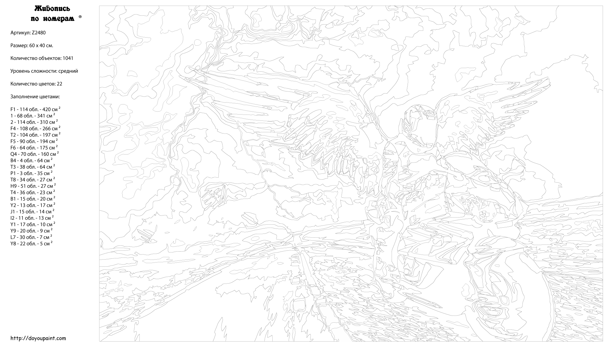 Количество красок от 18 до 24. Картина раскрашивается без смешивания красок. Высококачественные акриловые краски собственного производства сделают вашу картину яркой и уникальной. Все необходимые материалы есть в комплекте: натуральный хлопковый холст, натянутый на деревянный подрамник, баночки с акриловыми красками на водной основе, 2 кисти из качественного нейлона, схема раскрашивания, инструкция. Просто закрашивайте участки красками с соответствующим номером.