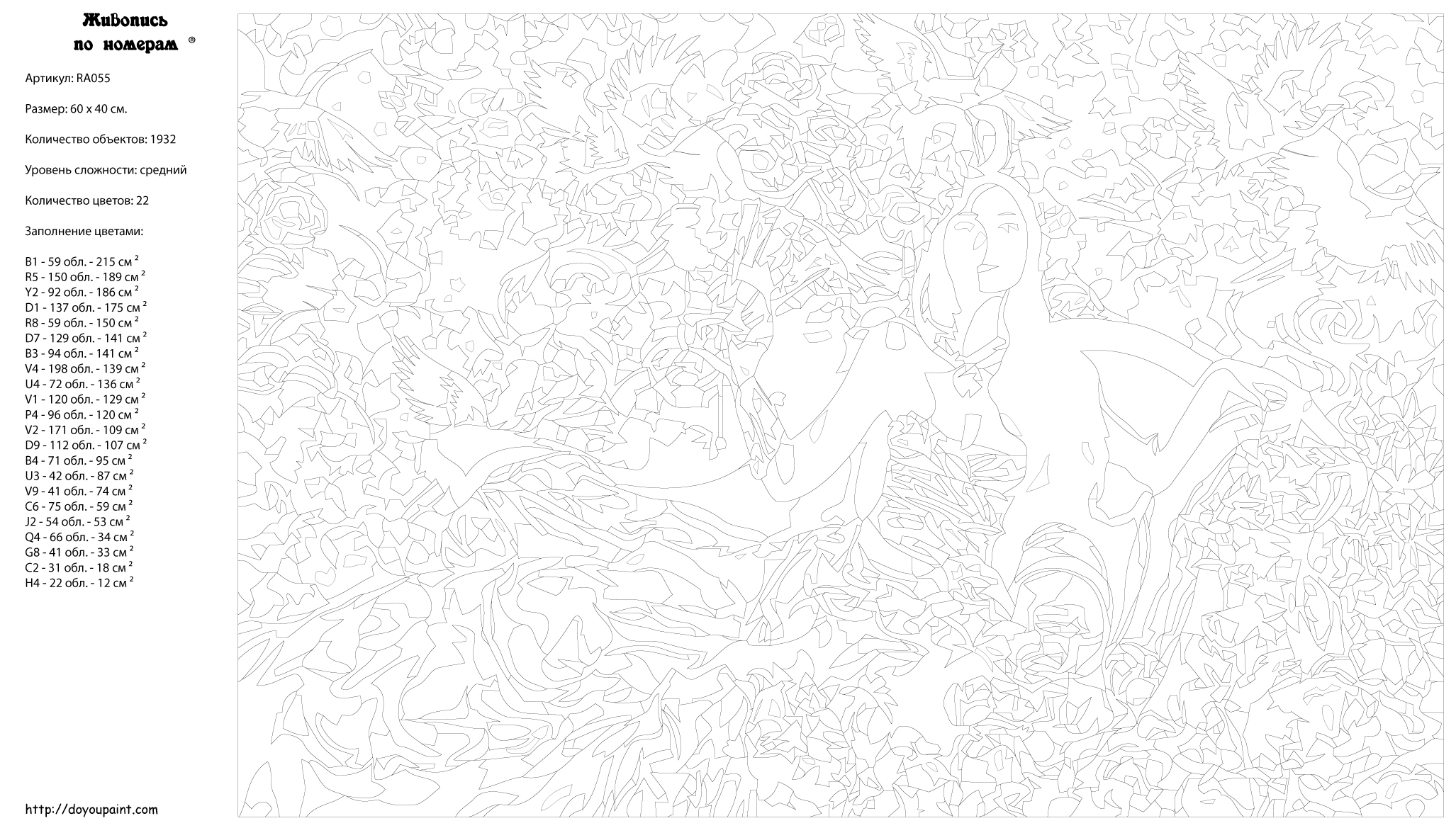 Количество красок от 18 до 24. Картина раскрашивается без смешивания красок. Высококачественные акриловые краски собственного производства сделают вашу картину яркой и уникальной. Все необходимые материалы есть в комплекте: натуральный хлопковый холст, натянутый на деревянный подрамник, баночки с акриловыми красками на водной основе, 2 кисти из качественного нейлона, схема раскрашивания, инструкция. Просто закрашивайте участки красками с соответствующим номером.