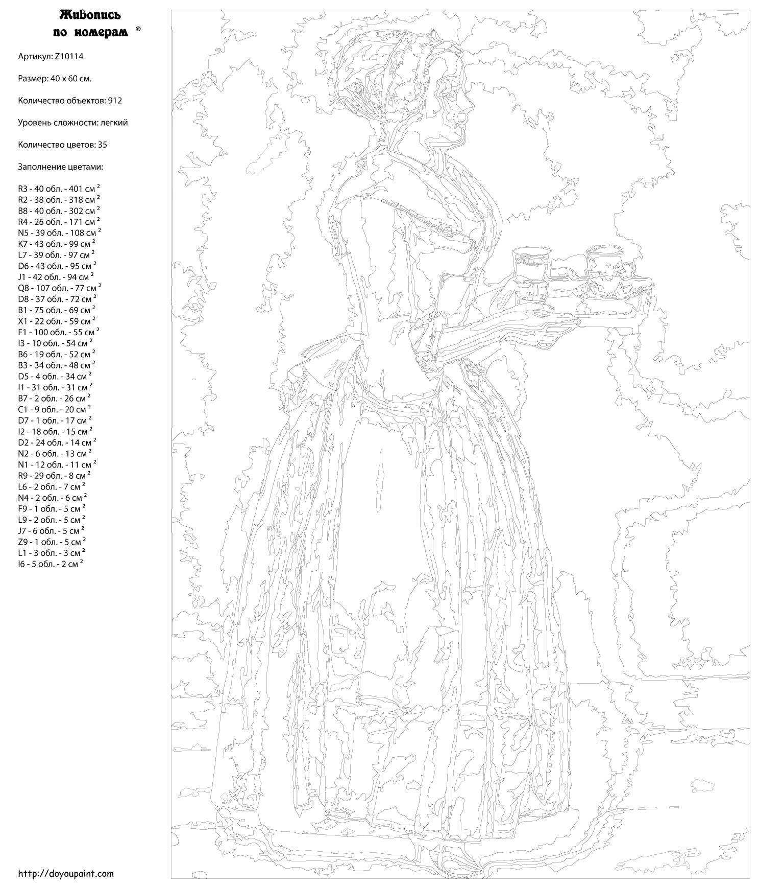 Количество красок от 18 до 24. Картина раскрашивается без смешивания красок. Высококачественные акриловые краски собственного производства сделают вашу картину яркой и уникальной. Все необходимые материалы есть в комплекте: натуральный хлопковый холст, натянутый на деревянный подрамник, баночки с акриловыми красками на водной основе, 2 кисти из качественного нейлона, схема раскрашивания, инструкция. Просто закрашивайте участки красками с соответствующим номером.