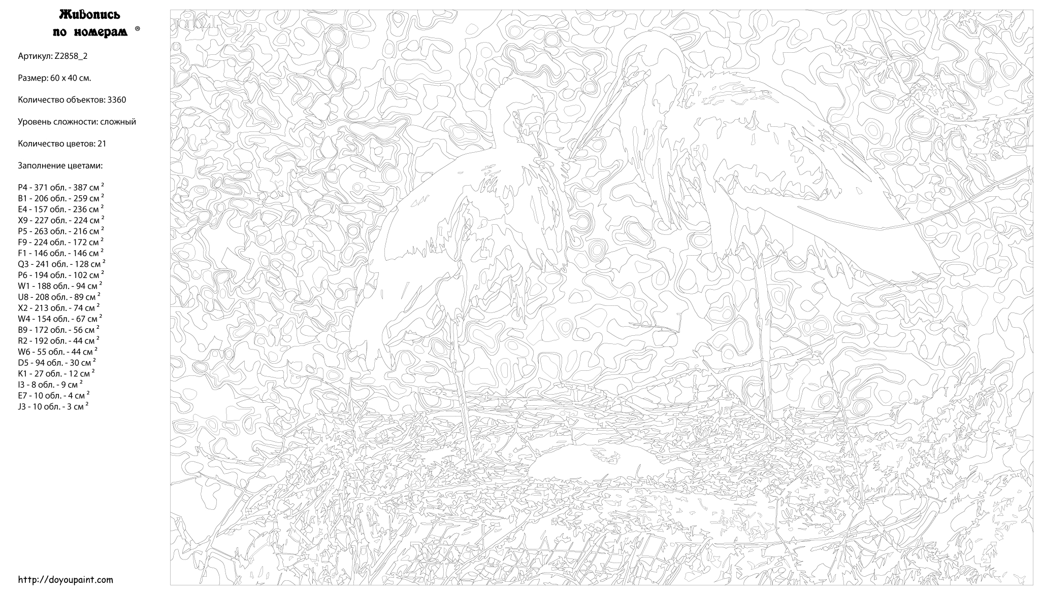 Количество красок от 18 до 24. Картина раскрашивается без смешивания красок. Высококачественные акриловые краски собственного производства сделают вашу картину яркой и уникальной. Все необходимые материалы есть в комплекте: натуральный хлопковый холст, натянутый на деревянный подрамник, баночки с акриловыми красками на водной основе, 2 кисти из качественного нейлона, схема раскрашивания, инструкция. Просто закрашивайте участки красками с соответствующим номером.
