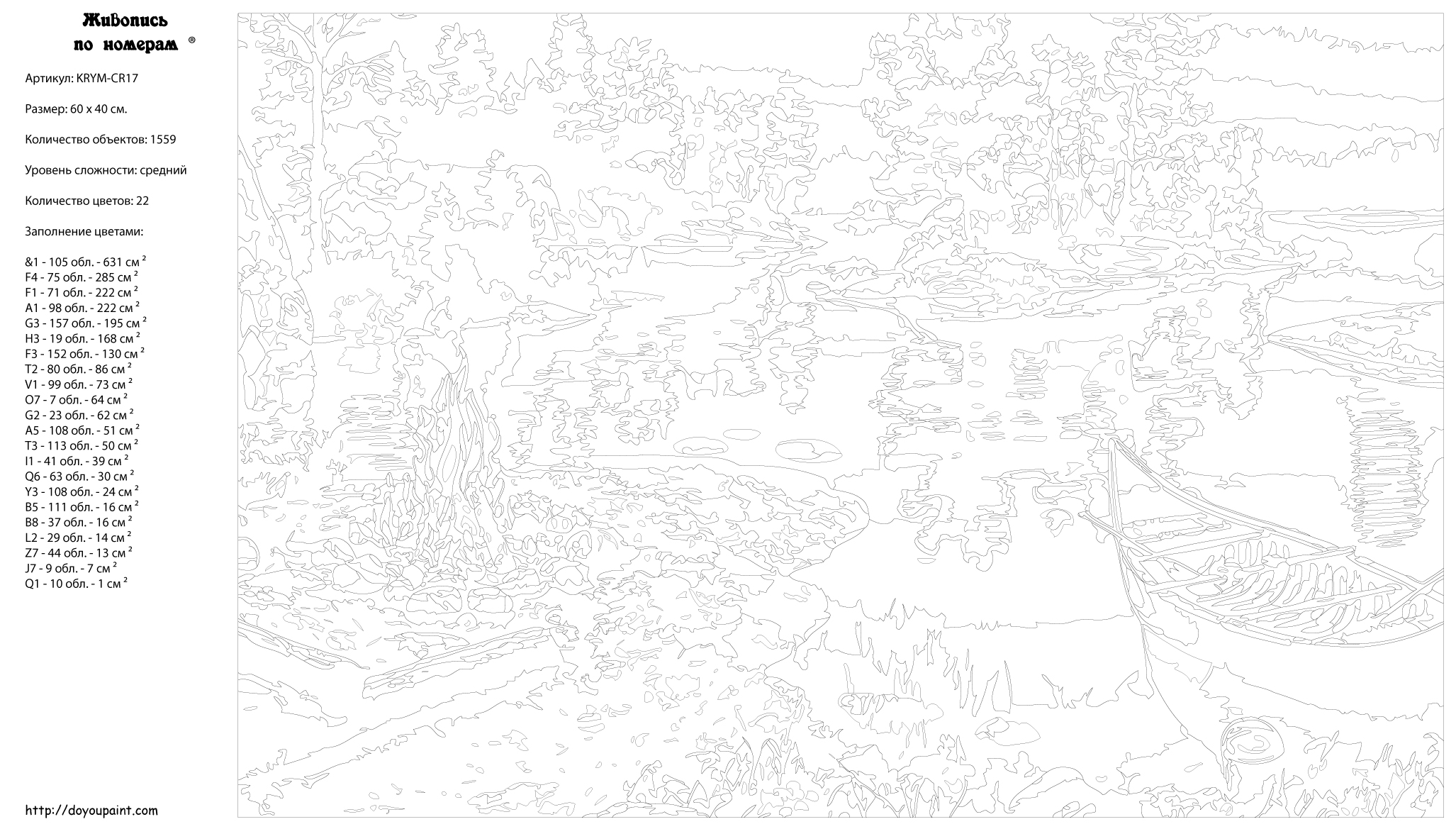 Количество красок от 18 до 24. Картина раскрашивается без смешивания красок. Высококачественные акриловые краски собственного производства сделают вашу картину яркой и уникальной. Все необходимые материалы есть в комплекте: натуральный хлопковый холст, натянутый на деревянный подрамник, баночки с акриловыми красками на водной основе, 2 кисти из качественного нейлона, схема раскрашивания, инструкция. Просто закрашивайте участки красками с соответствующим номером.