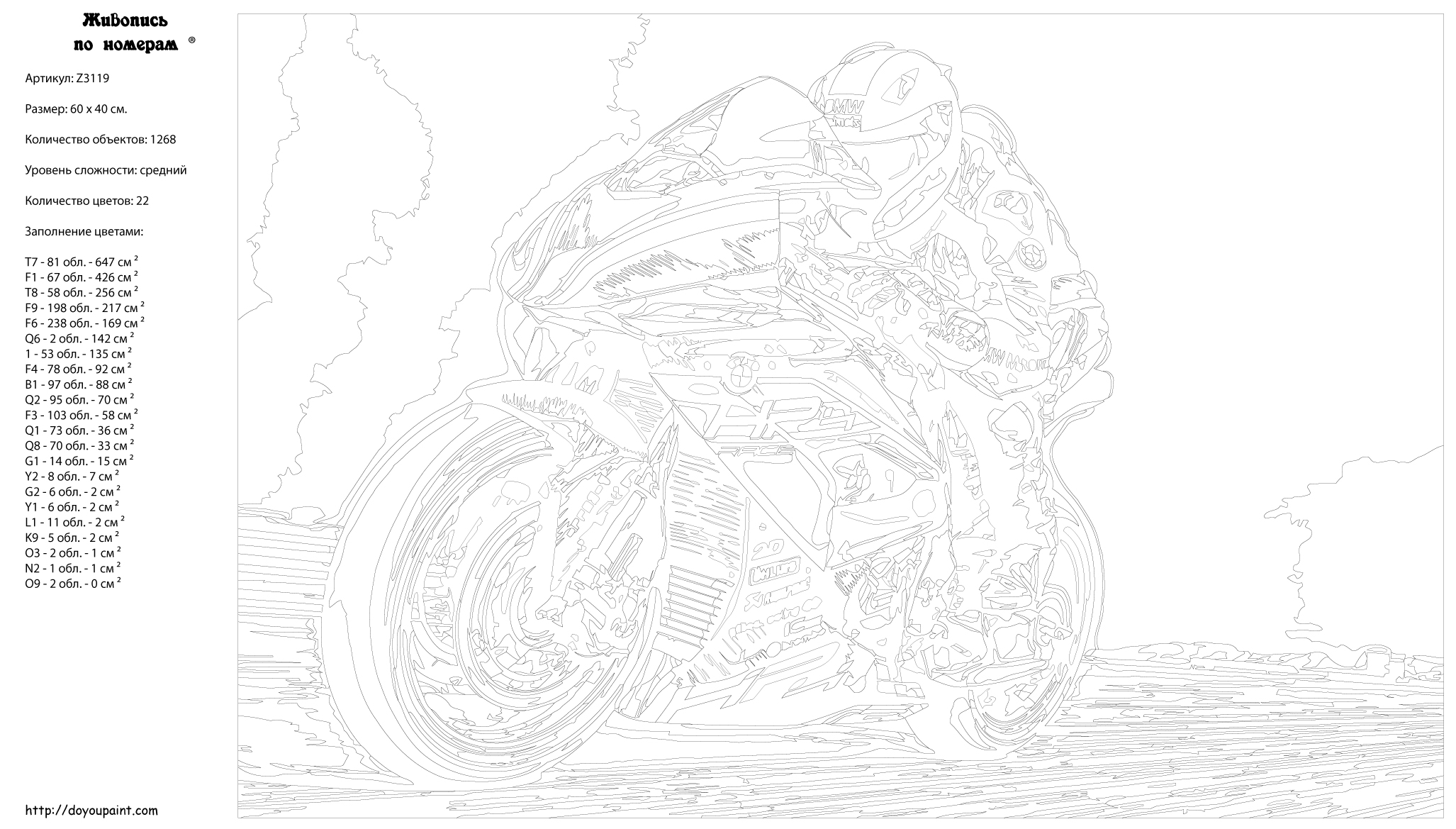 Количество красок от 18 до 24. Картина раскрашивается без смешивания красок. Высококачественные акриловые краски собственного производства сделают вашу картину яркой и уникальной. Все необходимые материалы есть в комплекте: натуральный хлопковый холст, натянутый на деревянный подрамник, баночки с акриловыми красками на водной основе, 2 кисти из качественного нейлона, схема раскрашивания, инструкция. Просто закрашивайте участки красками с соответствующим номером.