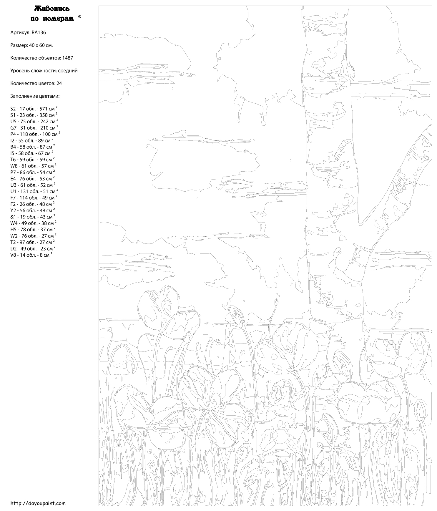 Количество красок от 18 до 24. Картина раскрашивается без смешивания красок. Высококачественные акриловые краски собственного производства сделают вашу картину яркой и уникальной. Все необходимые материалы есть в комплекте: натуральный хлопковый холст, натянутый на деревянный подрамник, баночки с акриловыми красками на водной основе, 2 кисти из качественного нейлона, схема раскрашивания, инструкция. Просто закрашивайте участки красками с соответствующим номером.