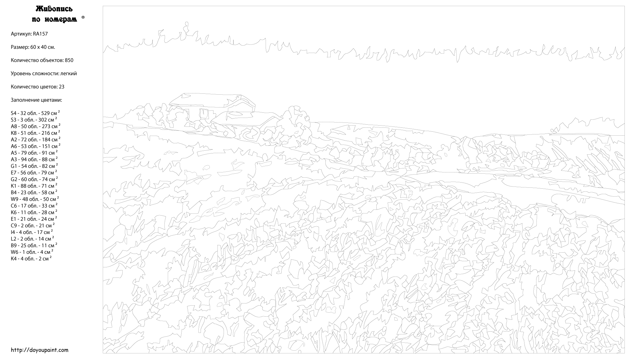 Количество красок от 18 до 24. Картина раскрашивается без смешивания красок. Высококачественные акриловые краски собственного производства сделают вашу картину яркой и уникальной. Все необходимые материалы есть в комплекте: натуральный хлопковый холст, натянутый на деревянный подрамник, баночки с акриловыми красками на водной основе, 2 кисти из качественного нейлона, схема раскрашивания, инструкция. Просто закрашивайте участки красками с соответствующим номером.