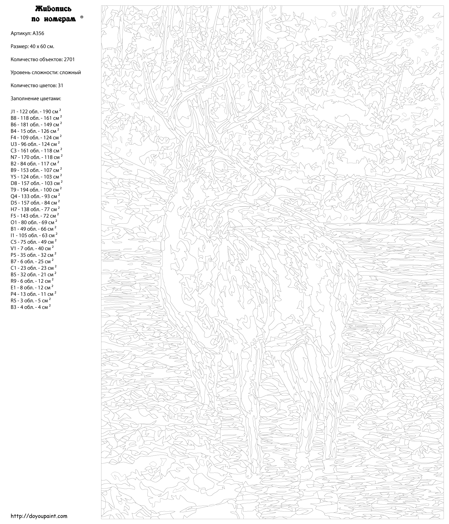 Количество красок от 18 до 24. Картина раскрашивается без смешивания красок. Высококачественные акриловые краски собственного производства сделают вашу картину яркой и уникальной. Все необходимые материалы есть в комплекте: натуральный хлопковый холст, натянутый на деревянный подрамник, баночки с акриловыми красками на водной основе, 2 кисти из качественного нейлона, схема раскрашивания, инструкция. Просто закрашивайте участки красками с соответствующим номером.