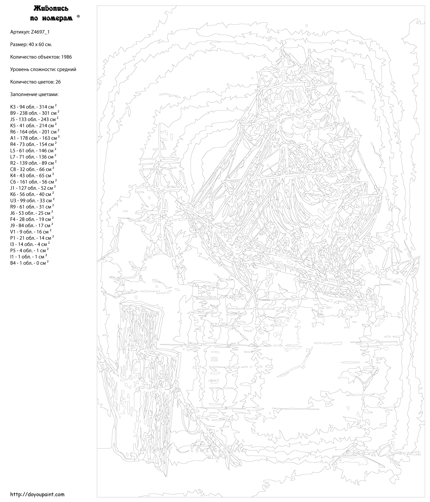 Количество красок от 18 до 24. Картина раскрашивается без смешивания красок. Высококачественные акриловые краски собственного производства сделают вашу картину яркой и уникальной. Все необходимые материалы есть в комплекте: натуральный хлопковый холст, натянутый на деревянный подрамник, баночки с акриловыми красками на водной основе, 2 кисти из качественного нейлона, схема раскрашивания, инструкция. Просто закрашивайте участки красками с соответствующим номером.