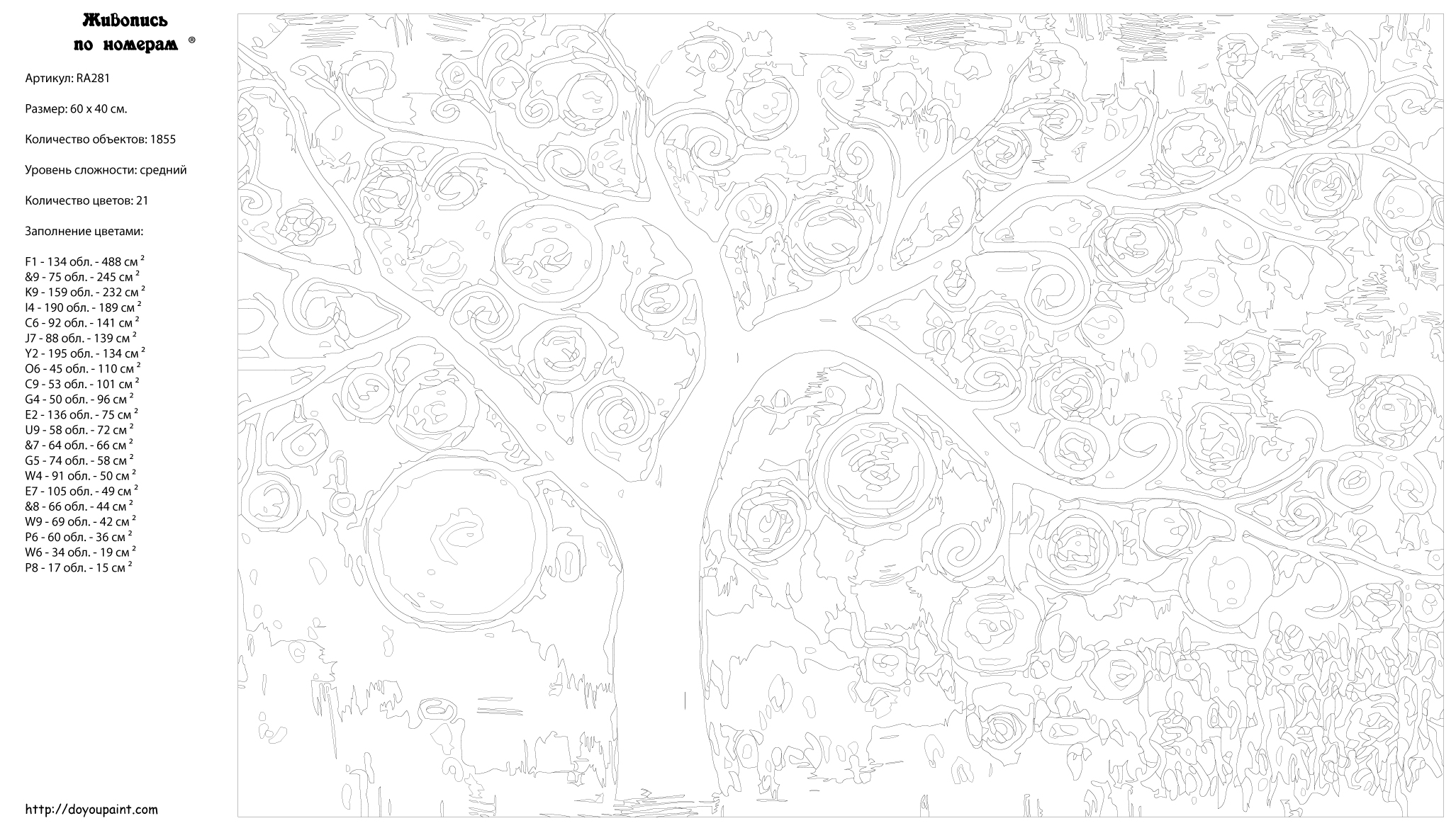 Количество красок от 18 до 24. Картина раскрашивается без смешивания красок. Высококачественные акриловые краски собственного производства сделают вашу картину яркой и уникальной. Все необходимые материалы есть в комплекте: натуральный хлопковый холст, натянутый на деревянный подрамник, баночки с акриловыми красками на водной основе, 2 кисти из качественного нейлона, схема раскрашивания, инструкция. Просто закрашивайте участки красками с соответствующим номером.