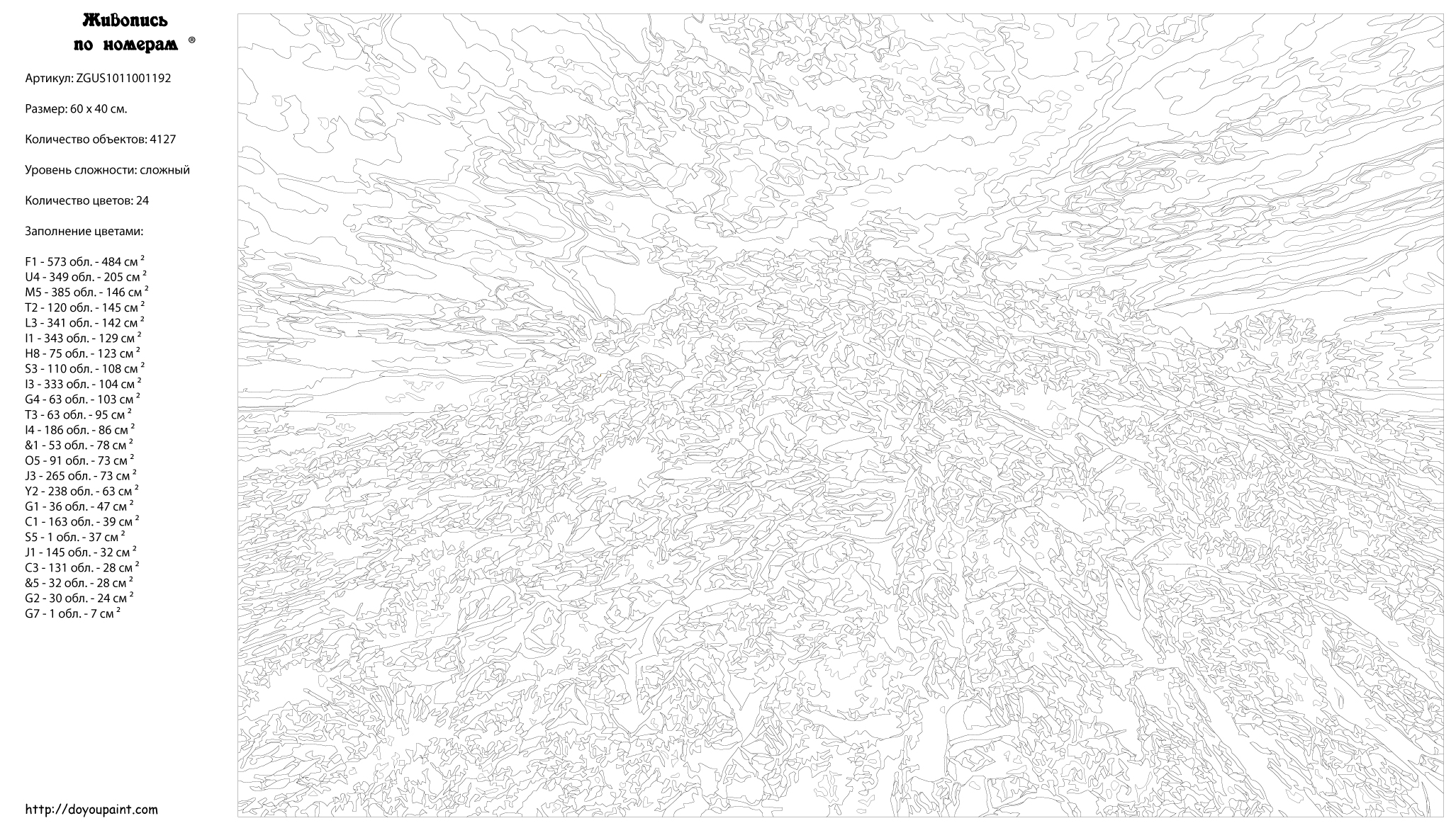 Количество красок от 18 до 24. Картина раскрашивается без смешивания красок. Высококачественные акриловые краски собственного производства сделают вашу картину яркой и уникальной. Все необходимые материалы есть в комплекте: натуральный хлопковый холст, натянутый на деревянный подрамник, баночки с акриловыми красками на водной основе, 2 кисти из качественного нейлона, схема раскрашивания, инструкция. Просто закрашивайте участки красками с соответствующим номером.