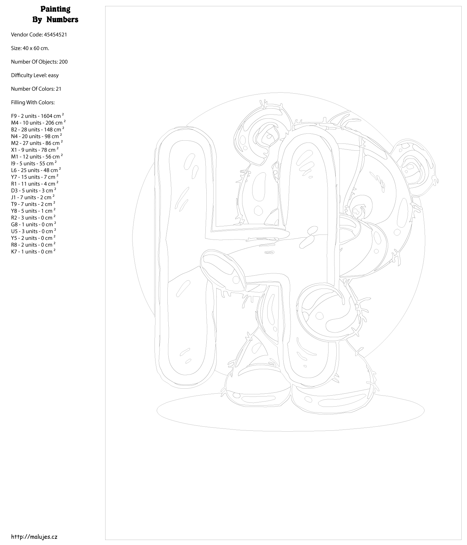 Количество красок от 18 до 24. Картина раскрашивается без смешивания красок. Высококачественные акриловые краски собственного производства сделают вашу картину яркой и уникальной. Все необходимые материалы есть в комплекте: натуральный хлопковый холст, натянутый на деревянный подрамник, баночки с акриловыми красками на водной основе, 2 кисти из качественного нейлона, схема раскрашивания, инструкция. Просто закрашивайте участки красками с соответствующим номером.