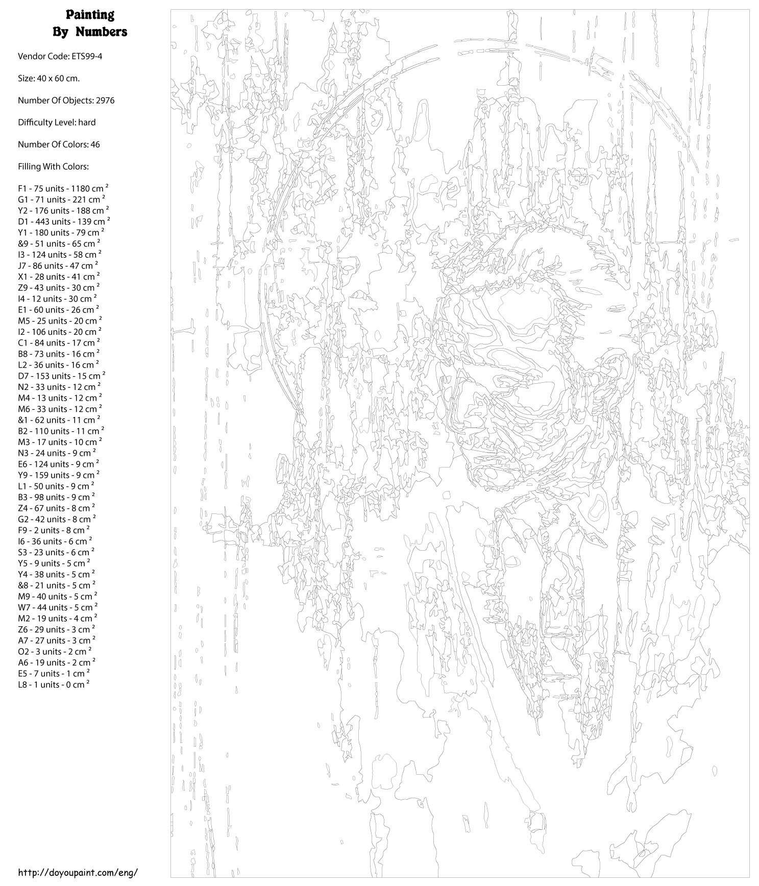 Количество красок от 18 до 24. Картина раскрашивается без смешивания красок. Высококачественные акриловые краски собственного производства сделают вашу картину яркой и уникальной. Все необходимые материалы есть в комплекте: натуральный хлопковый холст, натянутый на деревянный подрамник, баночки с акриловыми красками на водной основе, 2 кисти из качественного нейлона, схема раскрашивания, инструкция. Просто закрашивайте участки красками с соответствующим номером.